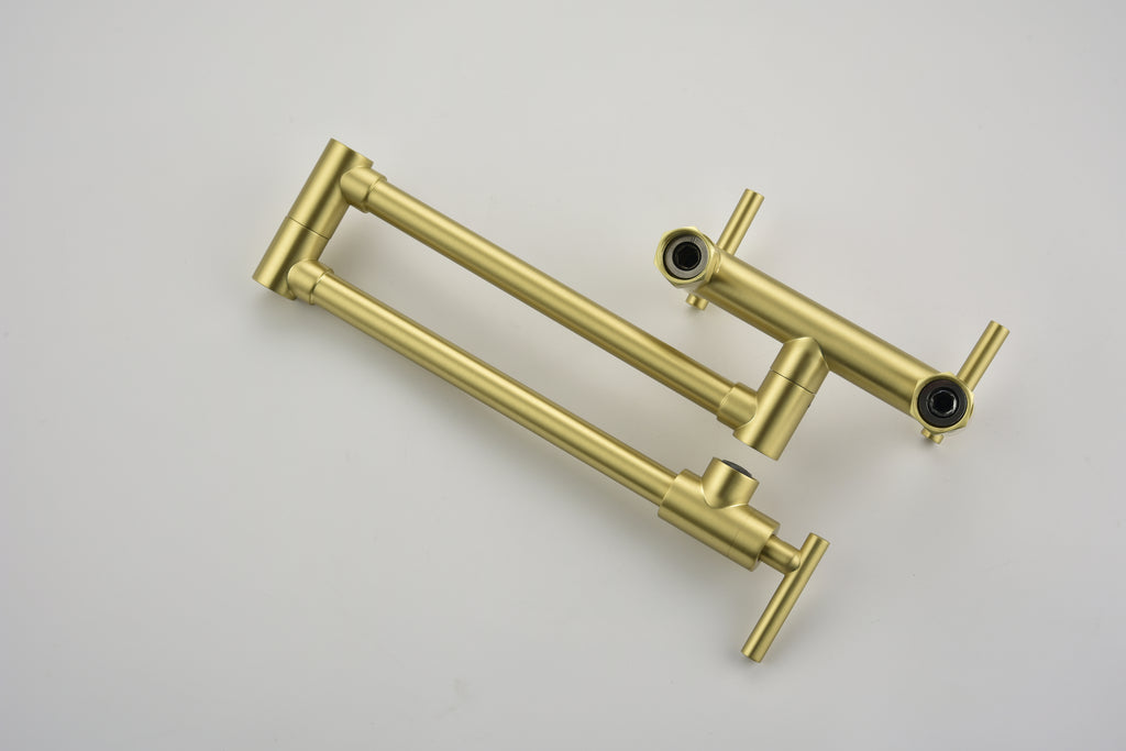 - The pot filler faucet features a free-swivel arm design, making it easier to fill any pot on the stovetop and for easier cleaning.