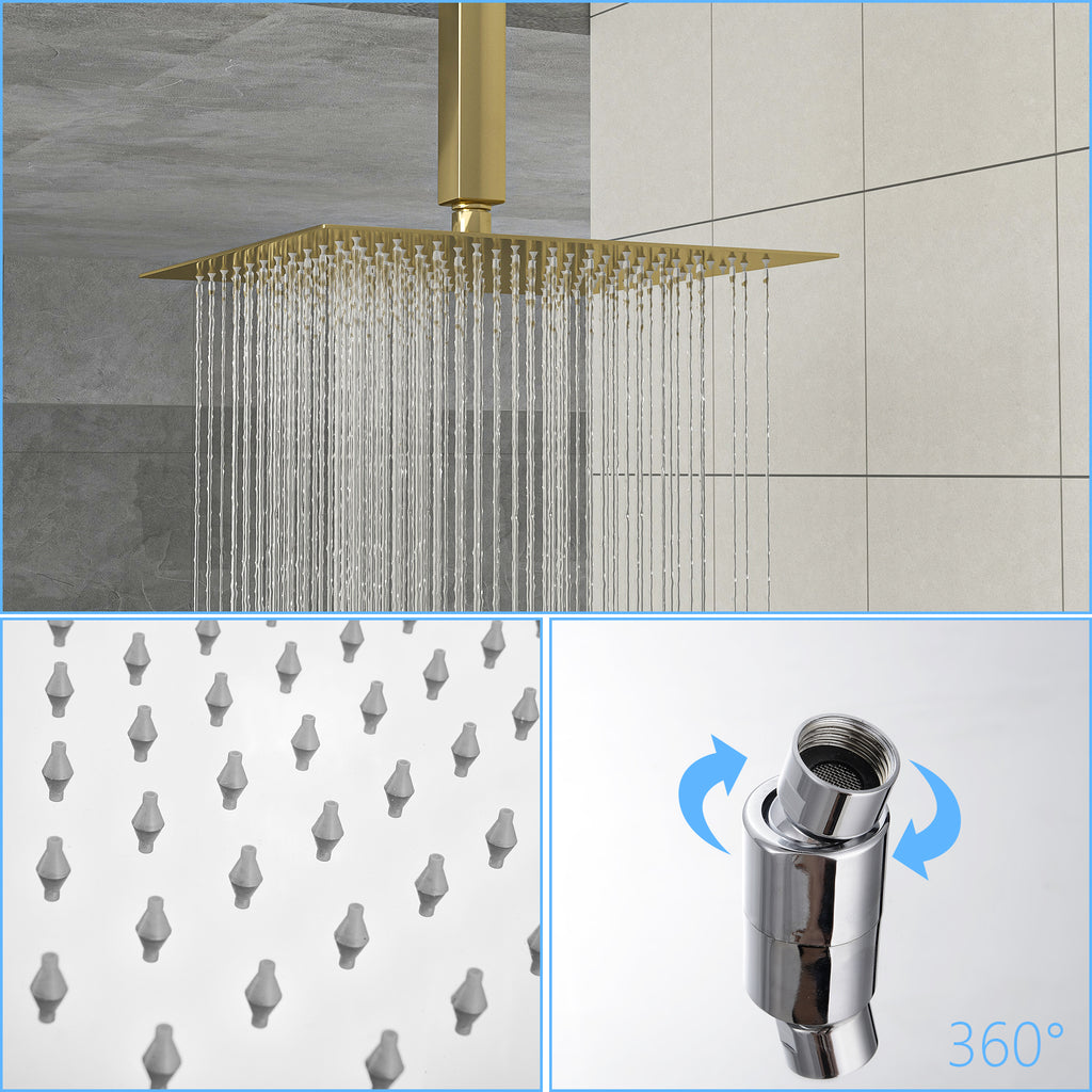 - {Rainfall Shower Head}Our ultra-thin overhead rainfall shower head offers extensive coverage, providing a soothing downpour shower experience with 360° adjustability.