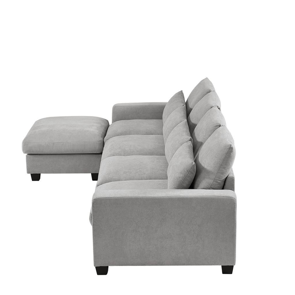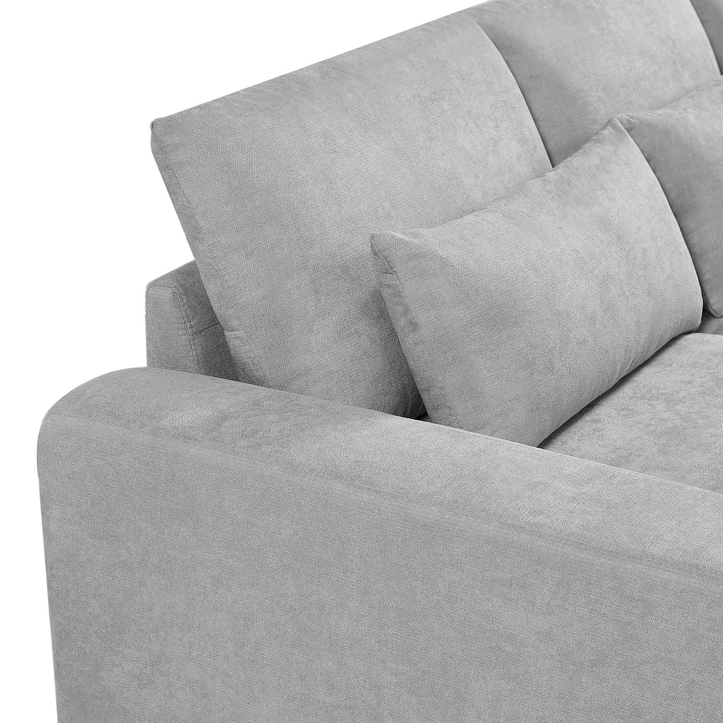 - [Comfortable ] Upholstered in tough linen with cushions featuring thick foam and feather cushion padding for prime relaxation. Lean back and stretch out your legs out long on the chaise lounge when you or guests need more space. Customize the placement of the four pillows anywhere you would like to add increased support when sitting after a long day or watching a movie.