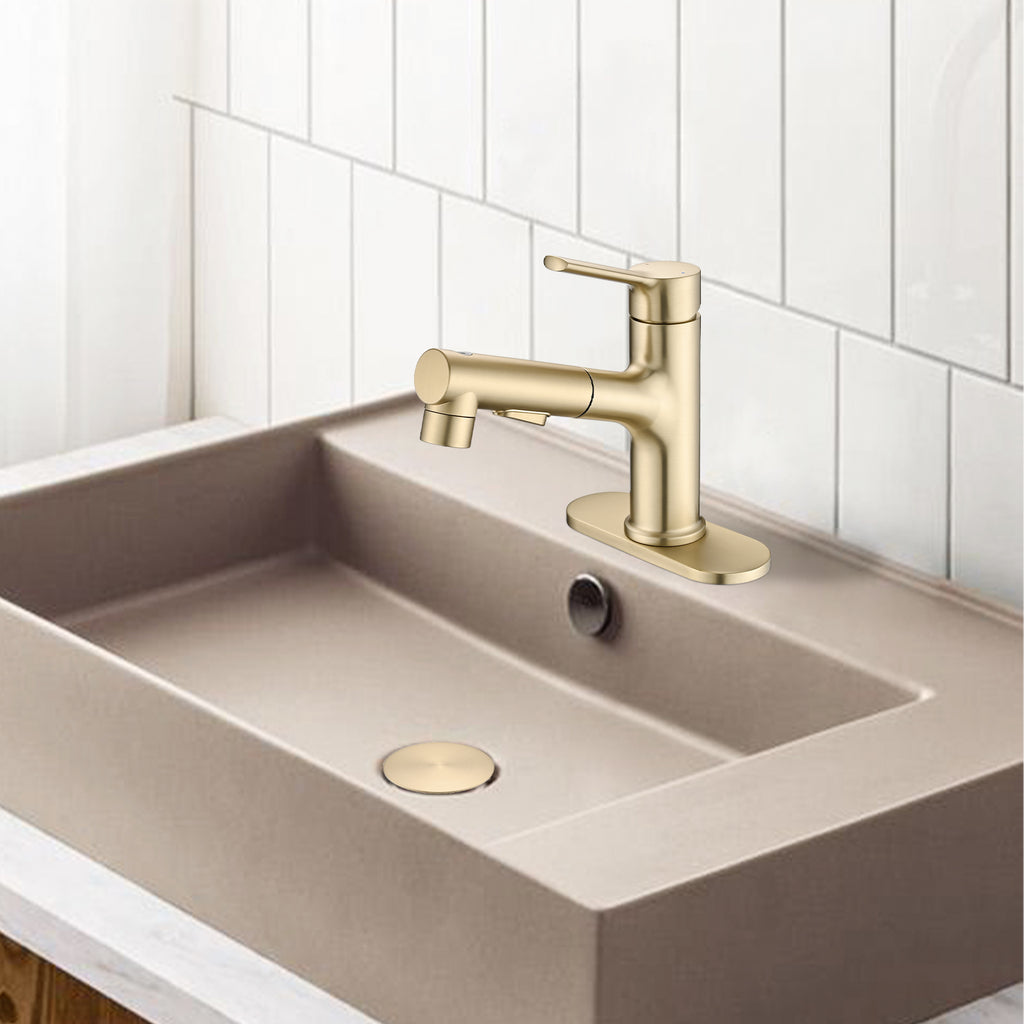 - Modern Square Design:Single handle design, flexible pull-out sprayer, easy to control of hot and cold water. This pull-down basin faucet adds a clean sleek look to your bathroom sink.