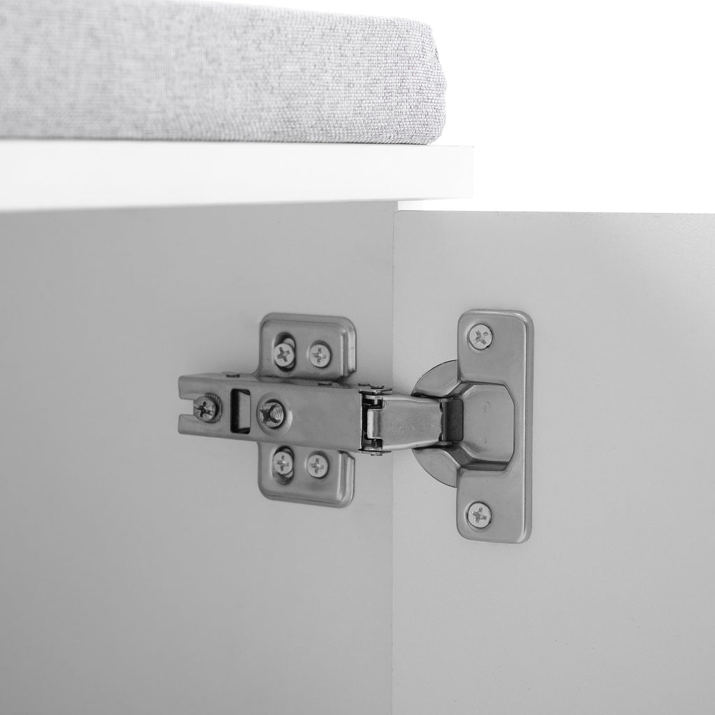 The cabinet of this hall tree features an innovative design with two rebound devices installed internally. This allows the bottom cabinet door to be opened effortlessly by merely pressing it. This thoughtful design not only enhances convenience but also offers space-saving advantages.