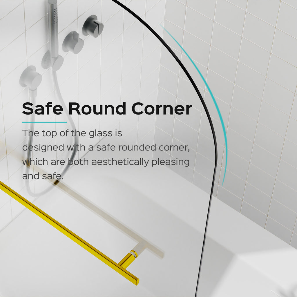 - BATHTUB SHOWER DOOR DESIGN: 31 inch in width * 55 inch in height bathtub shower door panel, brushed gold finish design. The shower door comes with a sturdy metals profile to fix against the wall which creates a barrier and prevents water from leaking and floor getting wet. The design is simple and practical, does not occupy too much position, and improves the space utilization rate of the bathroom.