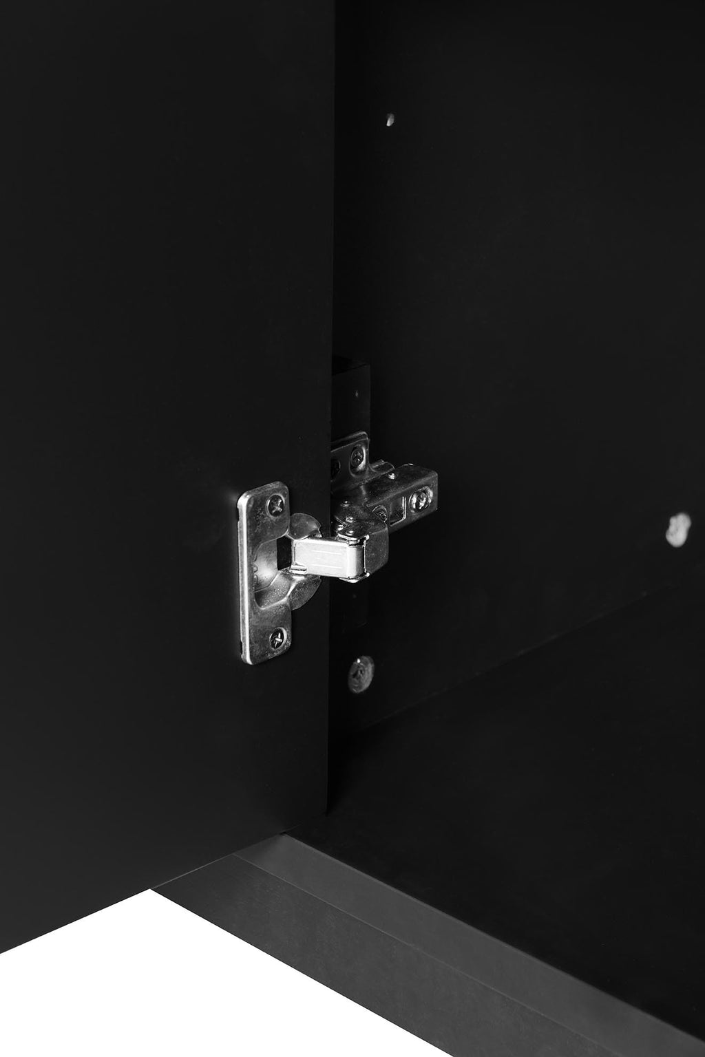 - Ample Storage: This 4-door sideboard has two removable and adjustable shelves that can be adjusted to three different heights. Two-tier door shelf (the first tier is adjustable) is designed to create more storage space.You can place bowls, glassware, plates or small household appliances inside. There is also two cable holes for your household appliances. Besides, the tabletop can hold vases, which adds more countertop space to your kitchen.