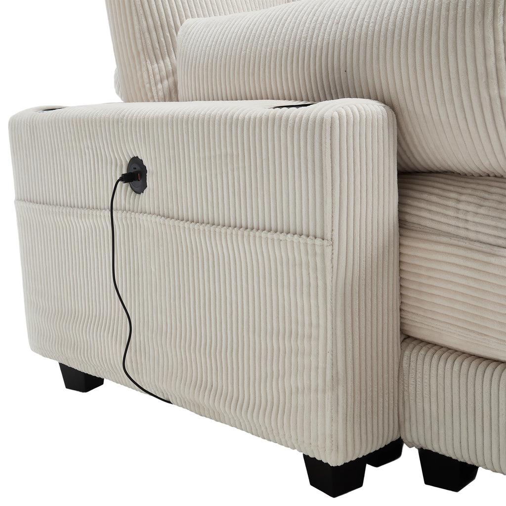This sofa is designed with great ingenuity. It is equipped with side storage pockets, which can be used to neatly place various small items, meeting daily usage needs. At the same time, it is equipped with two cup holders that are stable and durable, ensuring the safe placement of all kinds of beverages. The backrest of the sofa is adjustable, allowing for flexible adjustment to a comfortable angle according to the user's needs, thus bringing users a pleasant and comfortable experience.