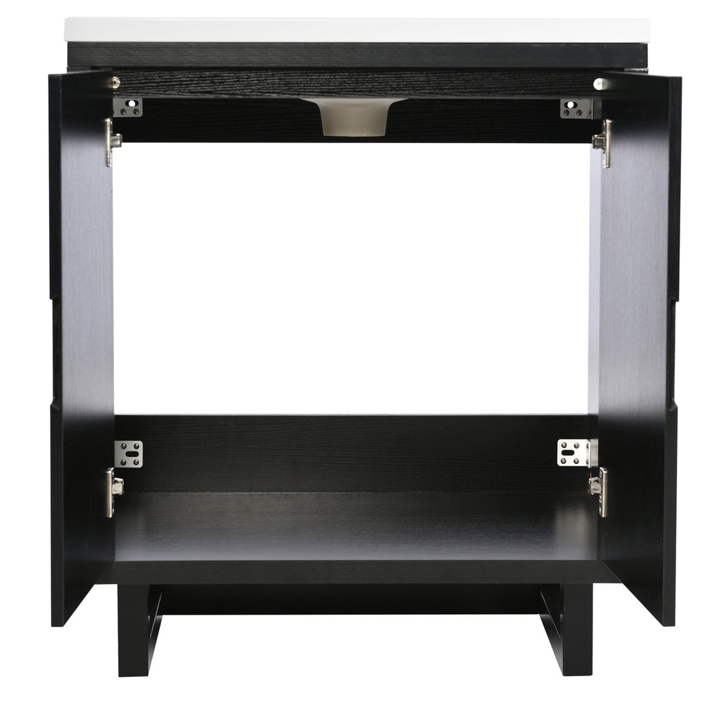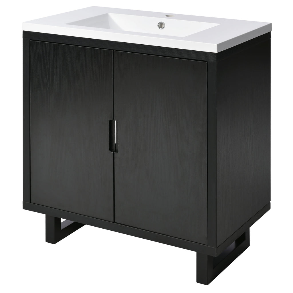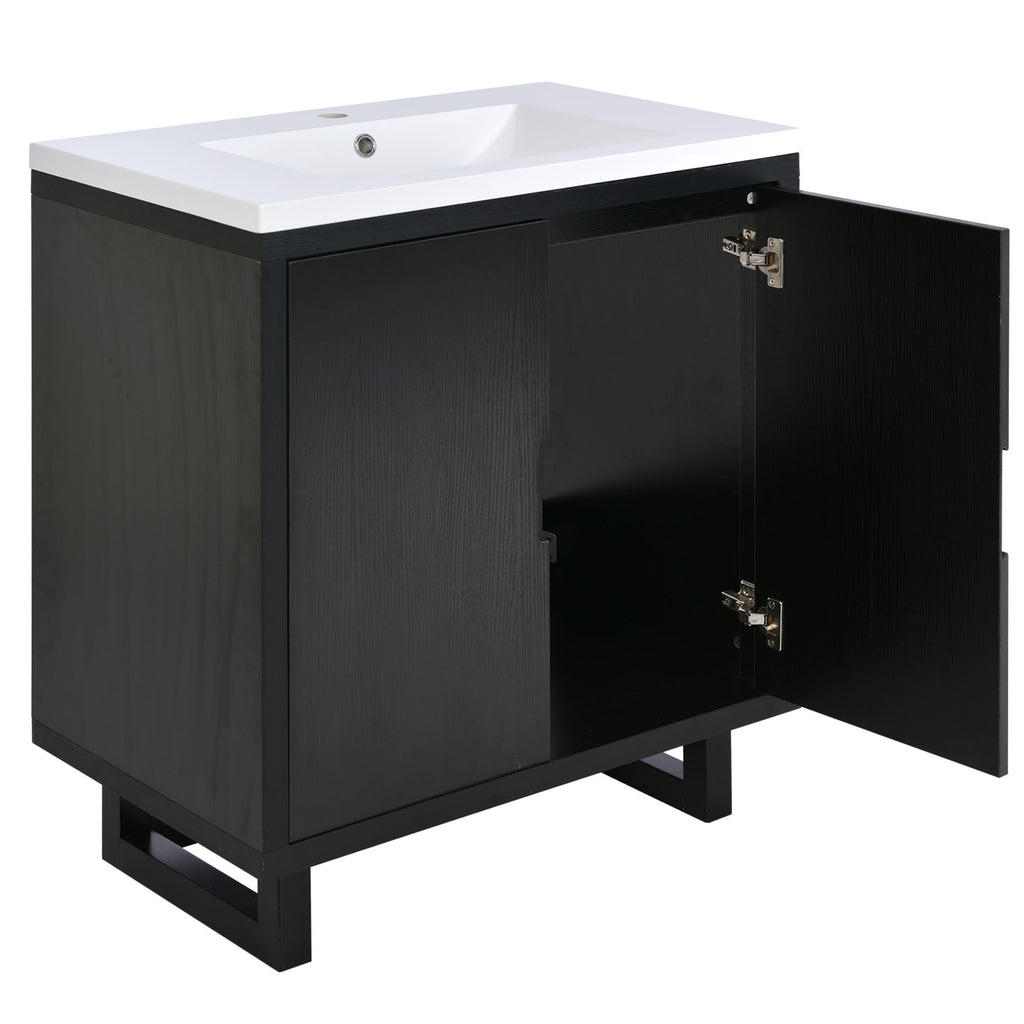 - [Large Storage Space] Organize your bathroom and keep visual space clean with the under-sink storage of this bathroom vanity. Two side by side open doors of the sink vanity offer an extra big space for storage and make the room clean and tidy.