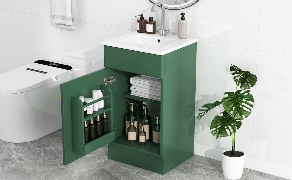 - Material: Practicality and durability is important to bathroom facilities, so we use MDF boards for this product, which not only increases the product stability but also ensures a long-lasting use. Furthermore, the surface of this vanity cabinet is in painted finish. It is easy to clean.