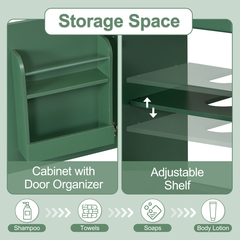 - Storage Space: There is a door shelf from left orientation and an adjustable shelf in the cabinet. You can place small toiletries on the two-tier door shelf and different sizes of items into the cabinet to keep them away from dust.
