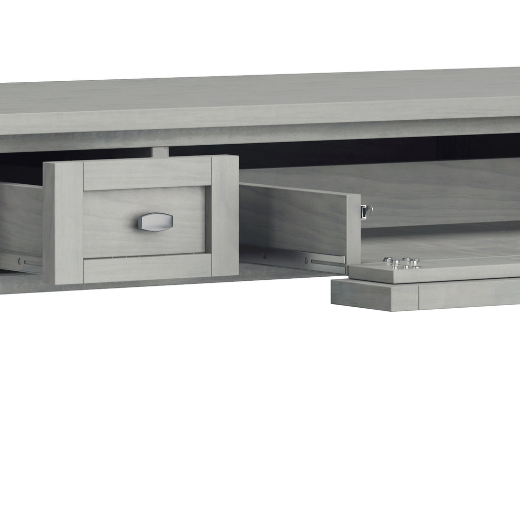 - Features two side storage drawers with metal drawer glides and a flip down central drawer front with internal keyboard tray