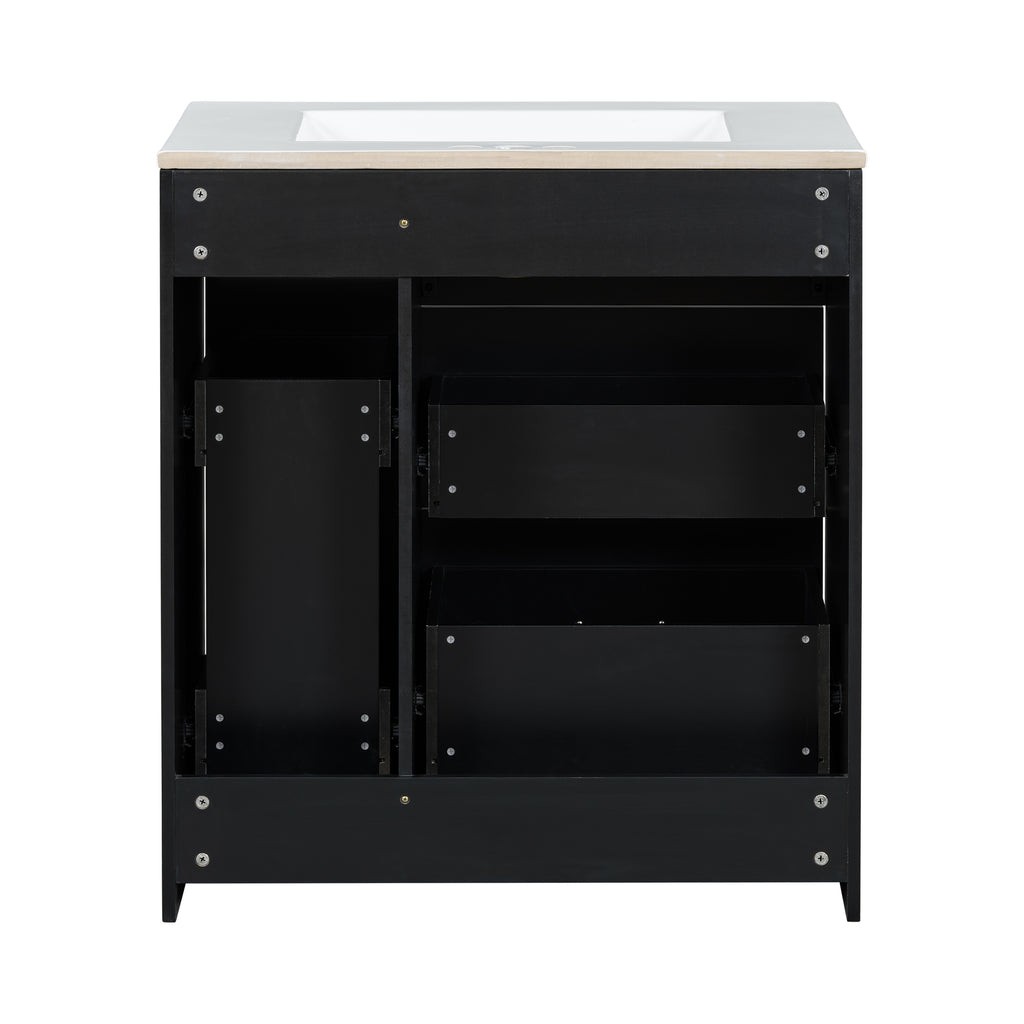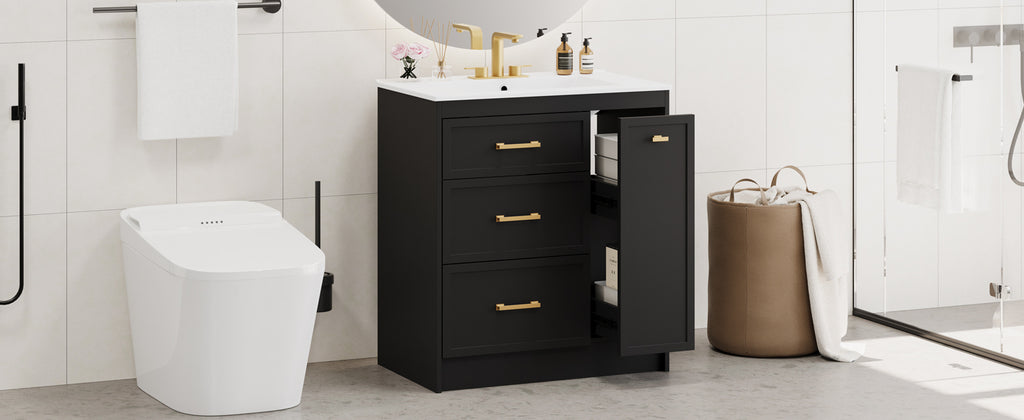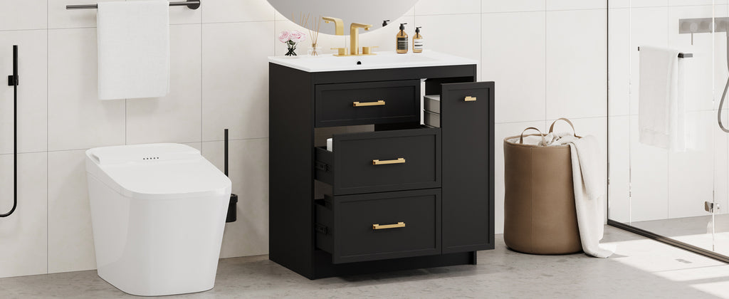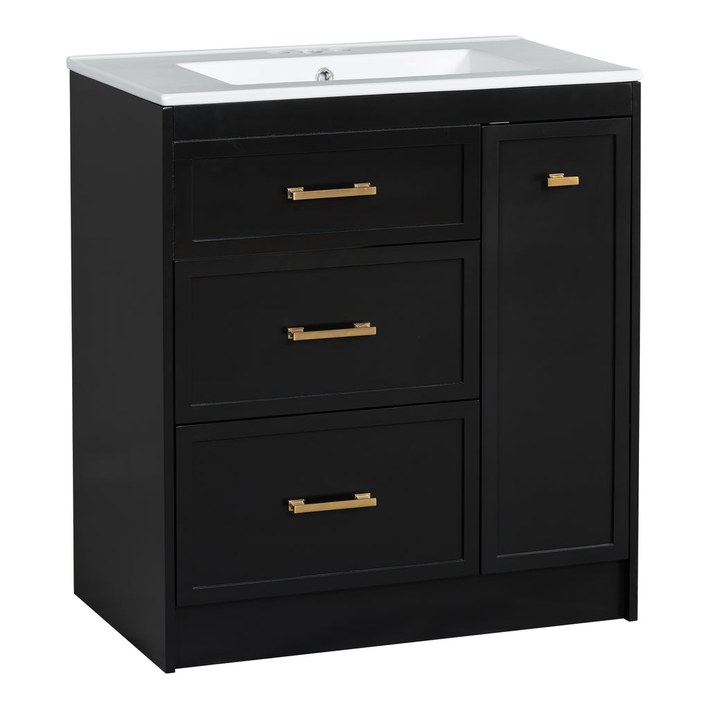 Classic 30' Black Bathroom Vanity Set, Floor Standing, with Three Drawers