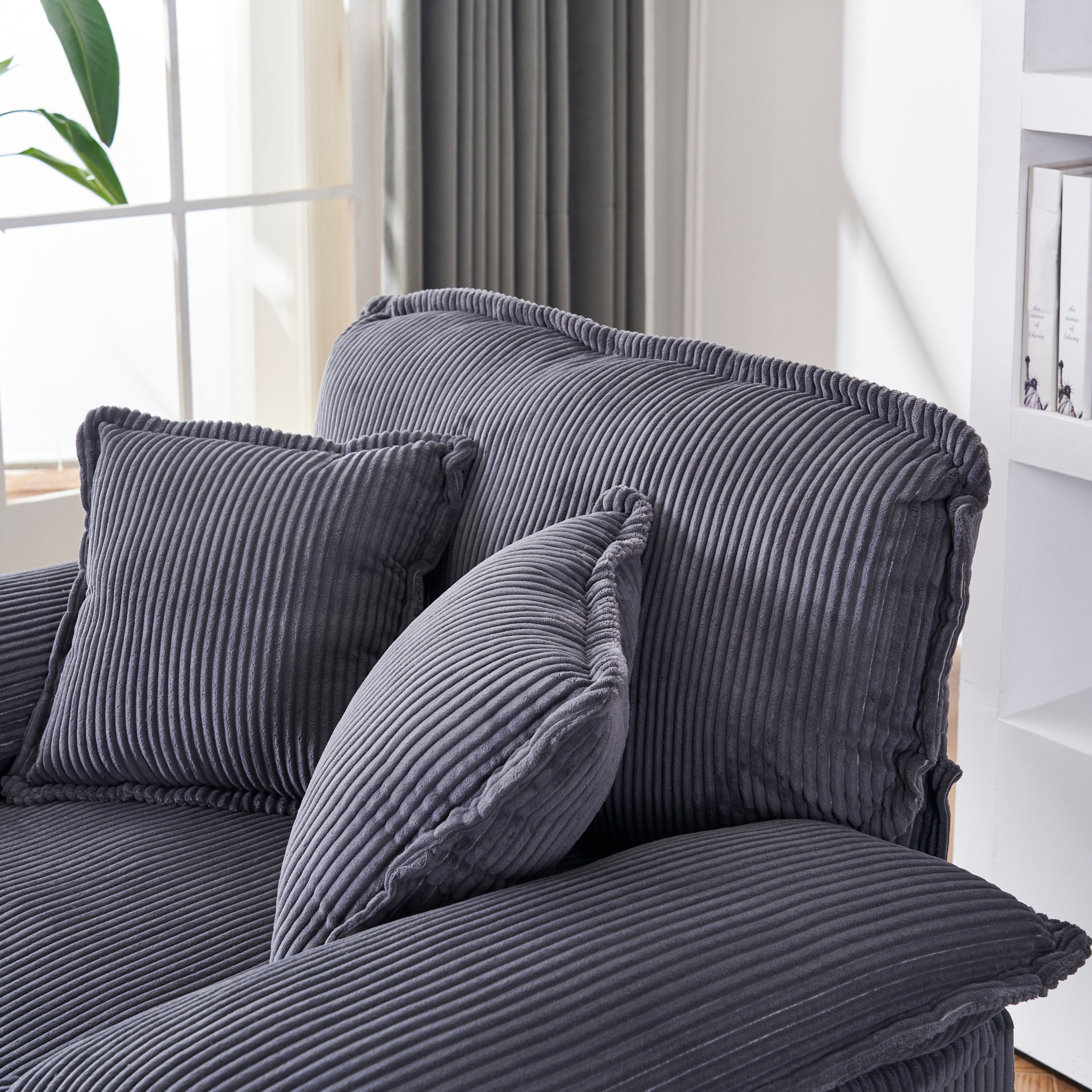 - Equipped 2 toss pillows provide both extra support for your waist back and more comfort for you Upholstered with soft corduroy in a neutral hue for an inviting look, this set will provide you with unrivaled comfort. High resilience sponge cushioning reinforced with spring package will support your body when seated, and easily restore their shape