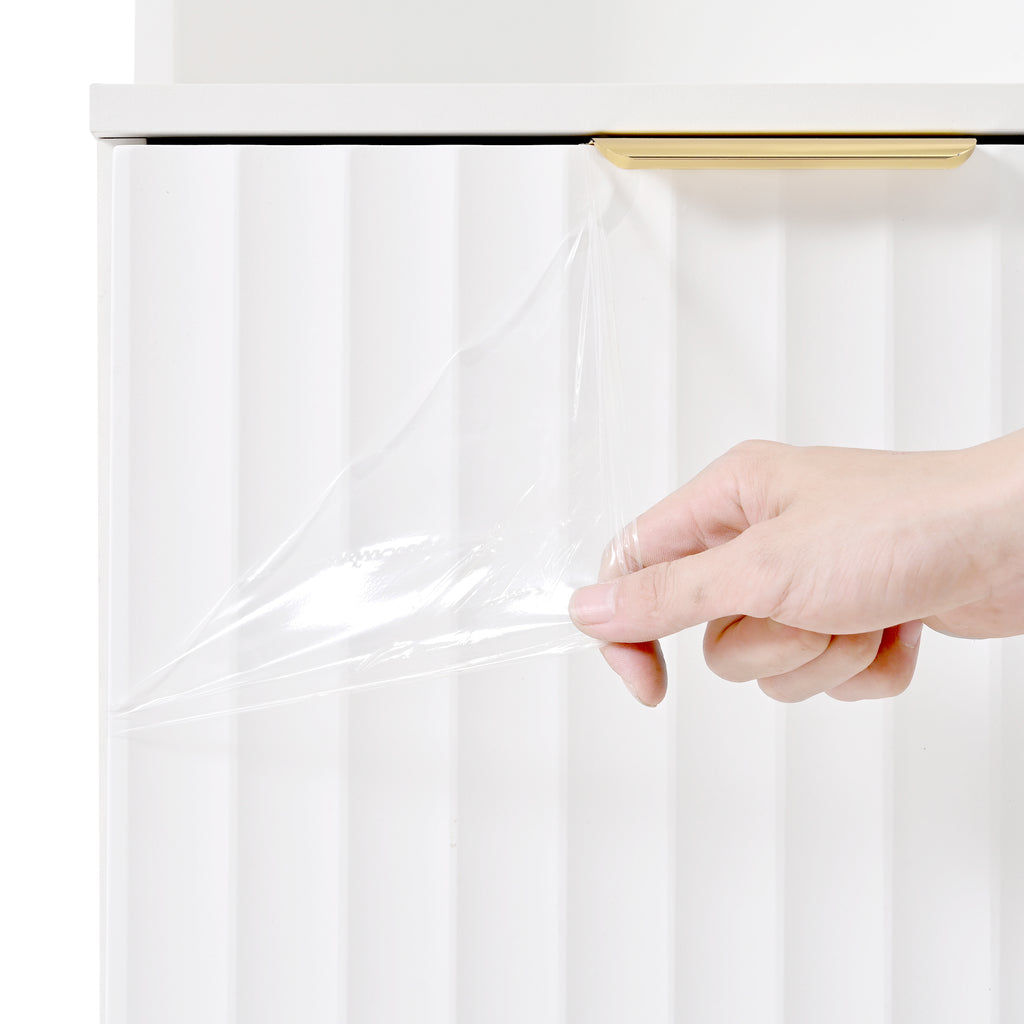 | Notice | The plastic film for protecting the high gloss surfaces of the bottom three cabinet doors from scratches should be teared off before put into use. If there is light dust on the edge, it can be wiped with a wet rag. |