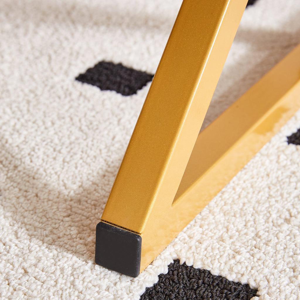 - Exquisite Craftsmanship: The sintered stone table top is crafted with advanced production techniques, ensuring the flatness and durability of the surface, while the finely processed golden metal legs showcase the exquisite craftsmanship of the furniture.
