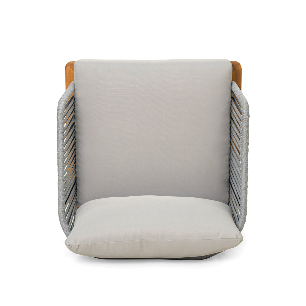 The chair is made from sturdy acacia wood and features rope, making it resistant to both harsh sunlight and heavy rain.Its durable construction ensures it can withstand various weather conditions without sustaining damage.
