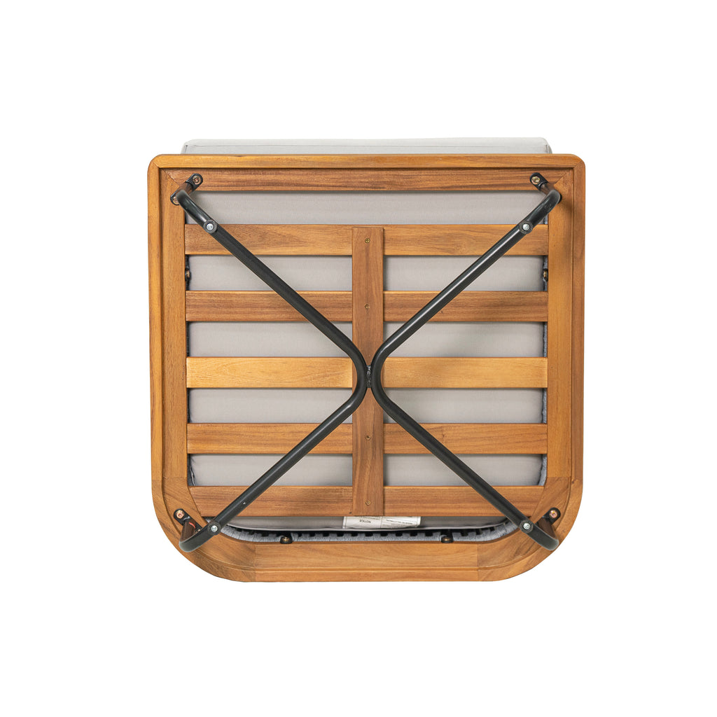 Material: Acacia Wood+metal Cushion Material: Water-Resistant Fabric Multiple Color Options Assembly Required All Dimensions Exclude Cushion Measurements Seat Cushion Thickness: 7.00 inches Arm Height: 25.00 inches Weight Capacity: 300 lb