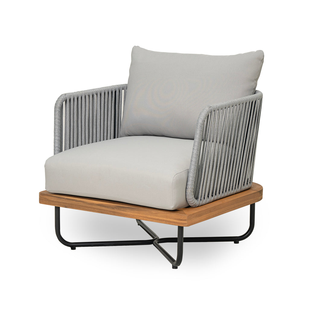 - Elevate your outdoor relaxation experience with our premium, modern-styled outdoor leisure chair. This chair is not just a piece of furniture; it's a statement of elegance and comfort that seamlessly blends with your outdoor space.The exterior is adorned with hand-woven rope, adding a touch of sophistication and visual appeal to your patio or garden.