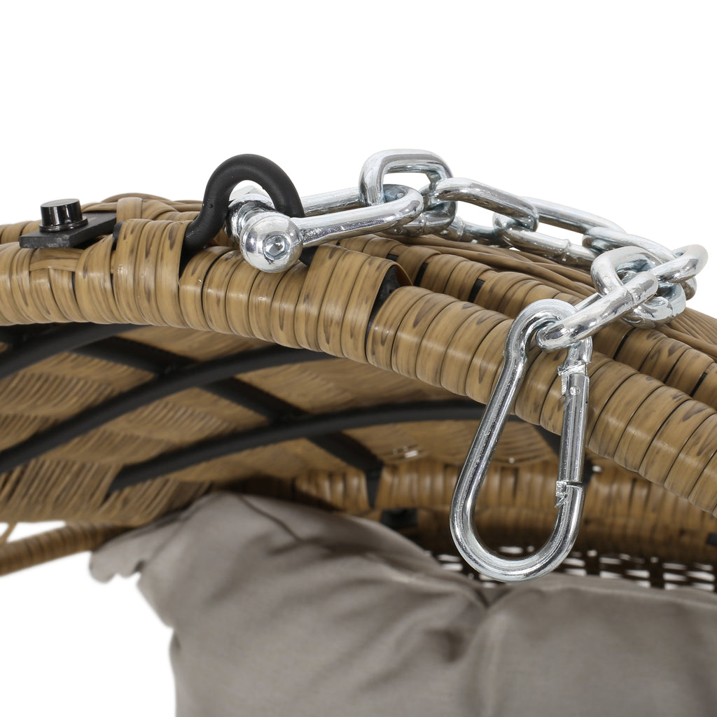 Outdoor/Indoor Wicker Hanging Chair With 8' Chain, Light Brown/Beige