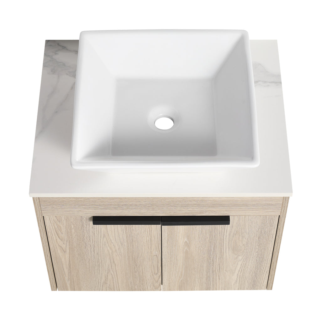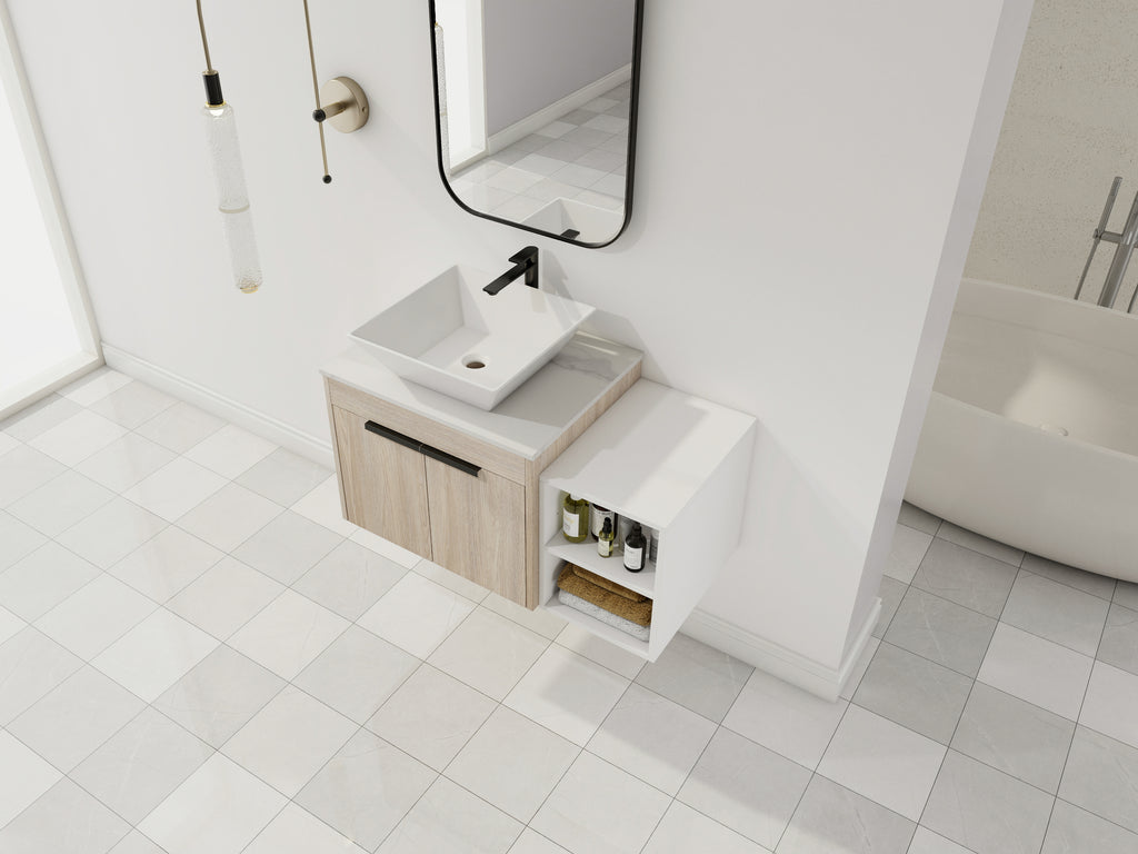| Package includes | - 1x Vanity Cabinet; - 1x Ceramic Art Basin; - 1x White Flat Stone Slab;- 2x Metal Handle; - 1x Storage Shelves; Parts Package |
