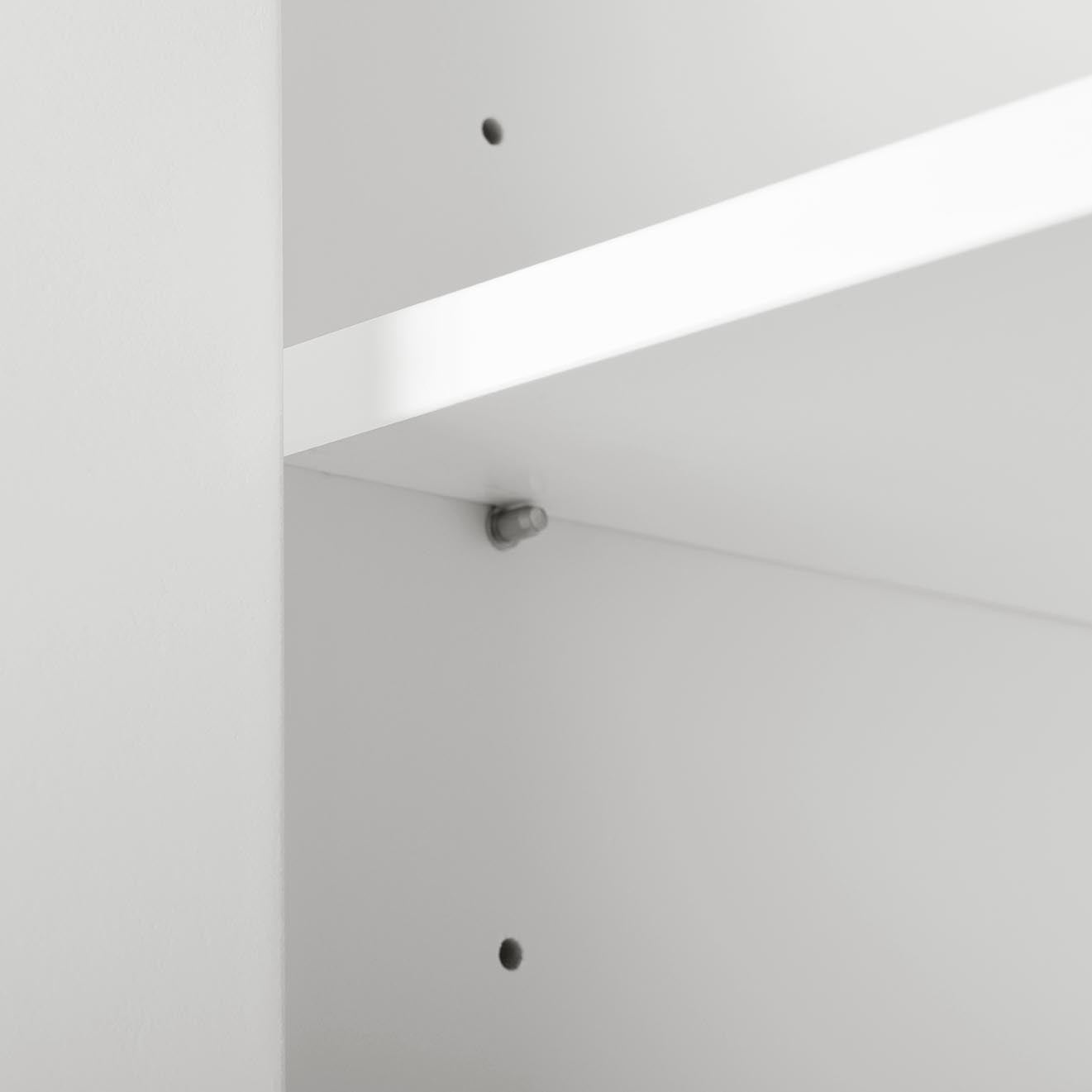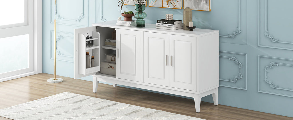 - Ample Storage: This 4-door sideboard has two removable and adjustable shelves that can be adjusted to three different heights. Two-tier door shelf (the first tier is adjustable) is designed to create more storage space.You can place bowls, glassware, plates or small household appliances inside. There is also two cable holes for your household appliances. Besides, the tabletop can hold vases, which adds more countertop space to your kitchen.