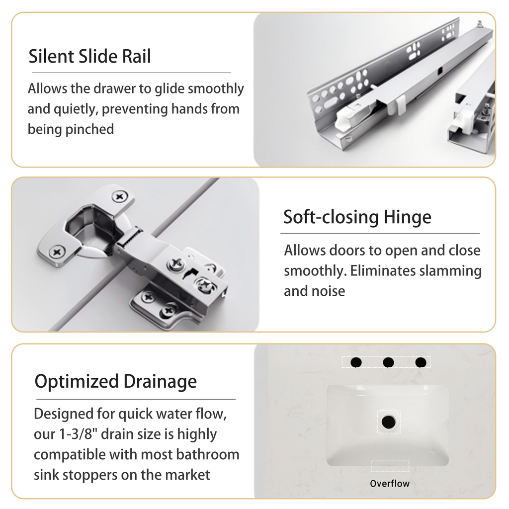 - Carrara Engineered Marble Top with Ceramic Sink: The pre sealed countertop protects against water damage, sparing you from potential maintenance headaches. Additionally, the unit is pre - drilled to easily accommodate faucets with 8 - inch spacing, saving you time and effort during installation.