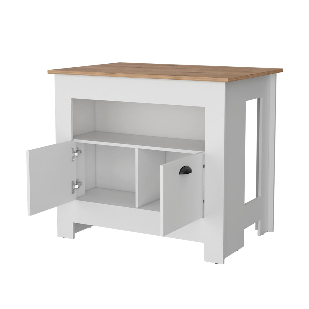Upgrade your kitchen with our exquisite kitchen island, effortlessly blending elegance and practicality. Featuring two offers generous storage space, while its two shelves and additional top shelf provide perfect spots for showcasing kitchen accessories and organizing ingredients and tools.