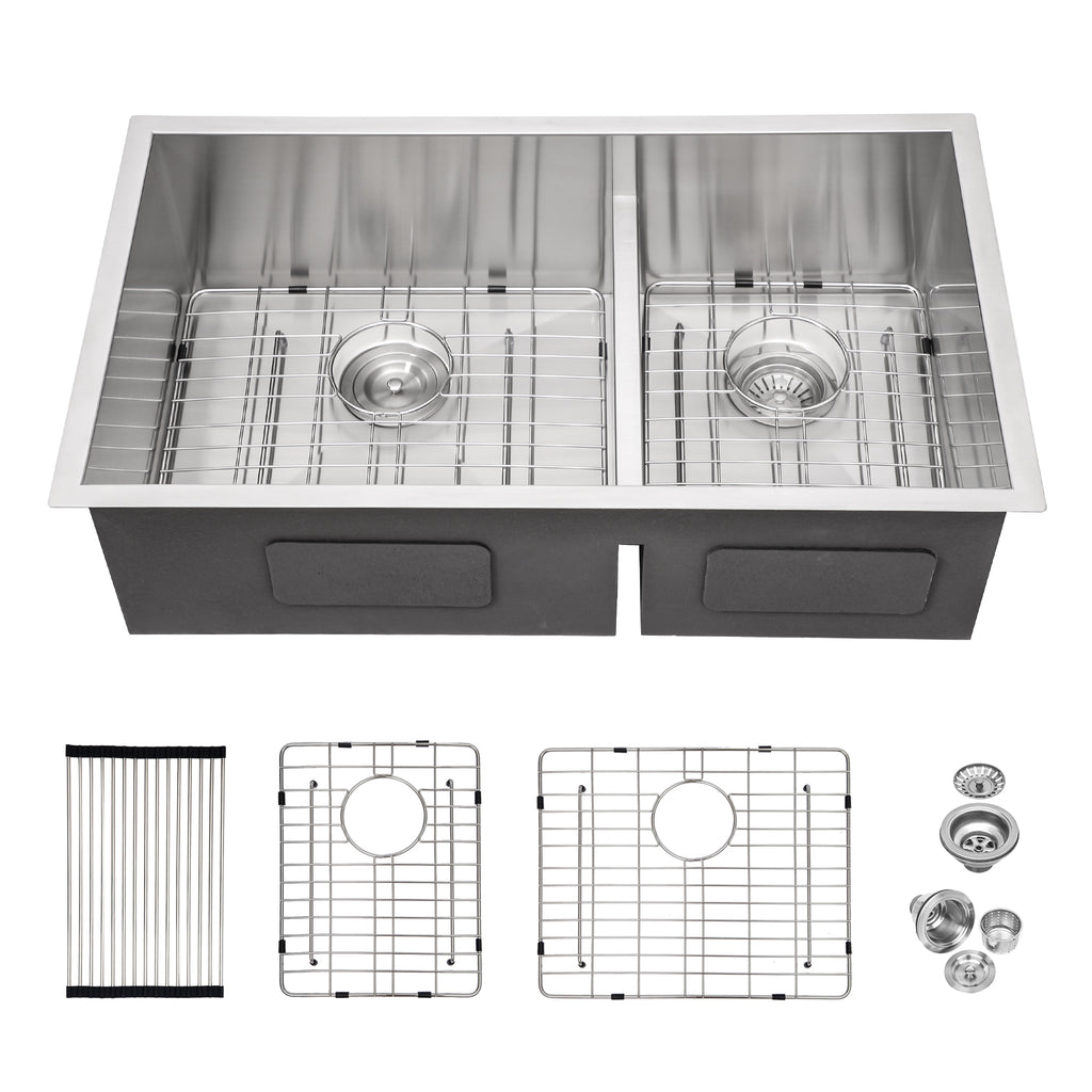 - This 33' double-bowl Undermount sink is a great addition for a highly efficient kitchen, the 60/40 double bowl design of this kitchen sink allows your cleaning work to be carried out at the same time, and different items can be cleaned separately. The installation method on the counter makes the kitchen very modern and beautiful.