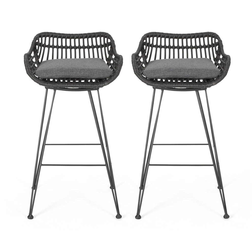 Outdoor Wicker Barstools with Cushions, Set of 2