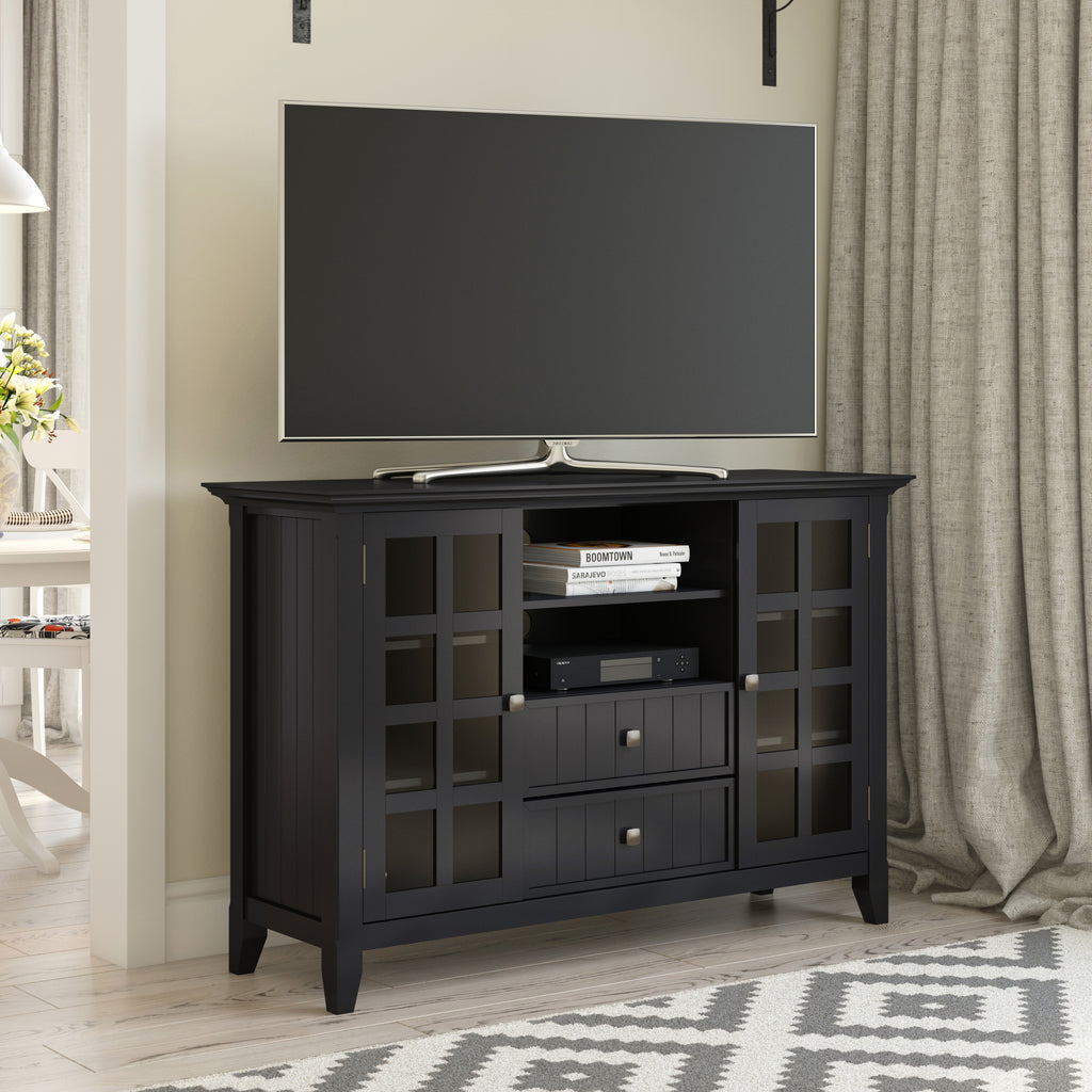 - Transitional design includes grooved sides and brushed bronze knobs, extra wide TV Stand is perfect for TVs up to 60 inches