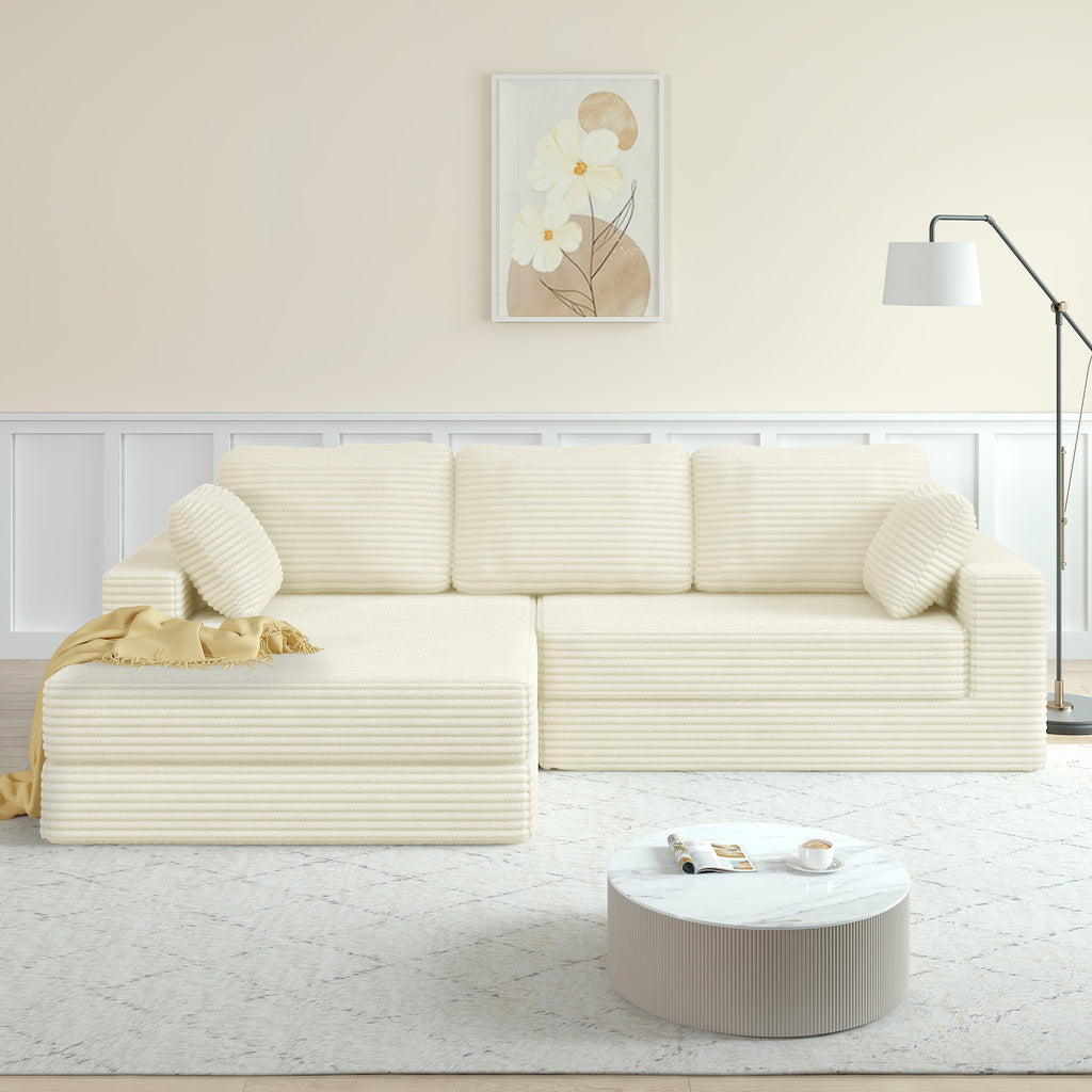 - Comfortable Lounging Area: This reversible sofa set characterizes plush comfort, spacious seating. The living room sofa set is made of soft and breathable terrycloth fabric with a sponge structure are both comfortable and durable.