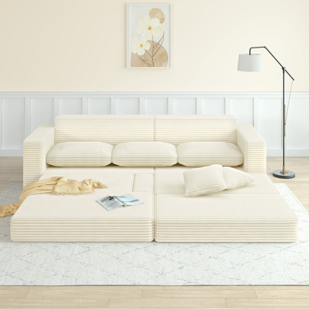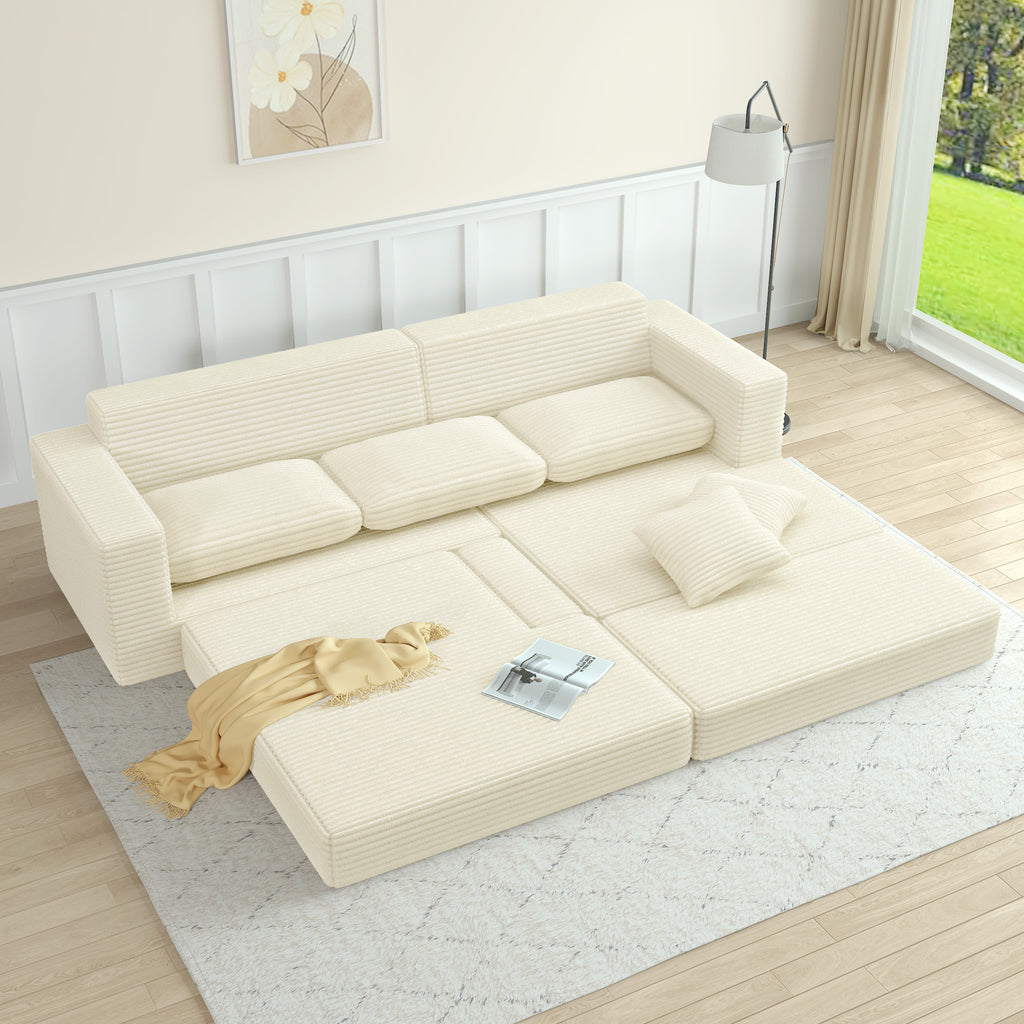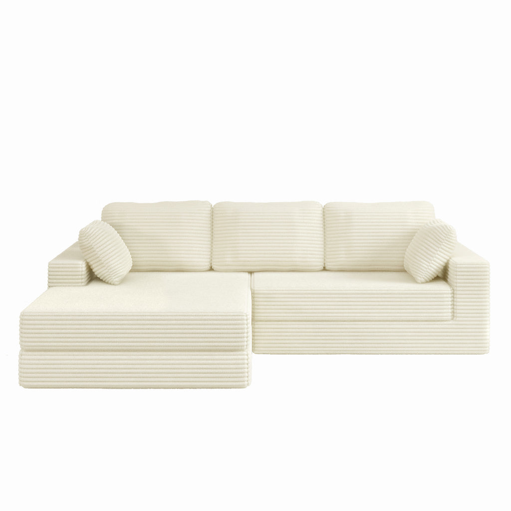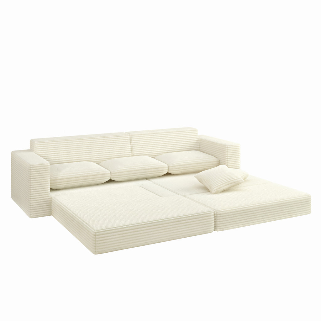 This sofa brings extra sleeping space and attractive style to your living room. It has wider armrests and backrests that can accommodate a lot of guests, can be converted into a variety of shapes, and can self-assemble into a bed, which is very convenient and suitable for overnight stays. Wrapped in a soft, skin-friendly flannelette fabric interior, this sofa is completely filled with foam, and the seat is filled with foam and supported by springs to help prevent the sofa from sagging over time. This upholstered sofa features square armrests. No wood frame construction, no assembly required, very friendly to elderly children.