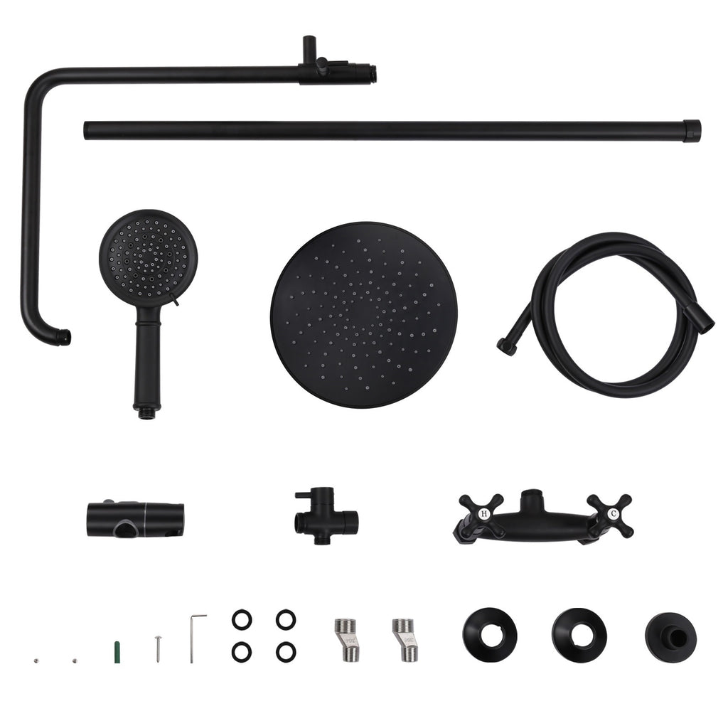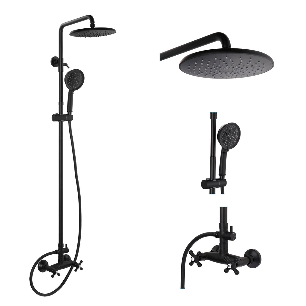 - Dual Function:Overhead rainfall shower and hand held spray.Solid brass diverter switches between top shower and hand spray. Simple and classic single handle shower faucet control hot and cold water.