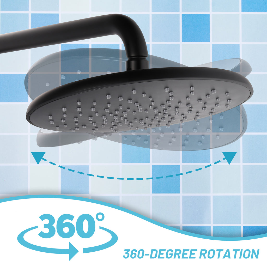- Showerhead: round showerhead offers a wide radius of soft, even rain spray