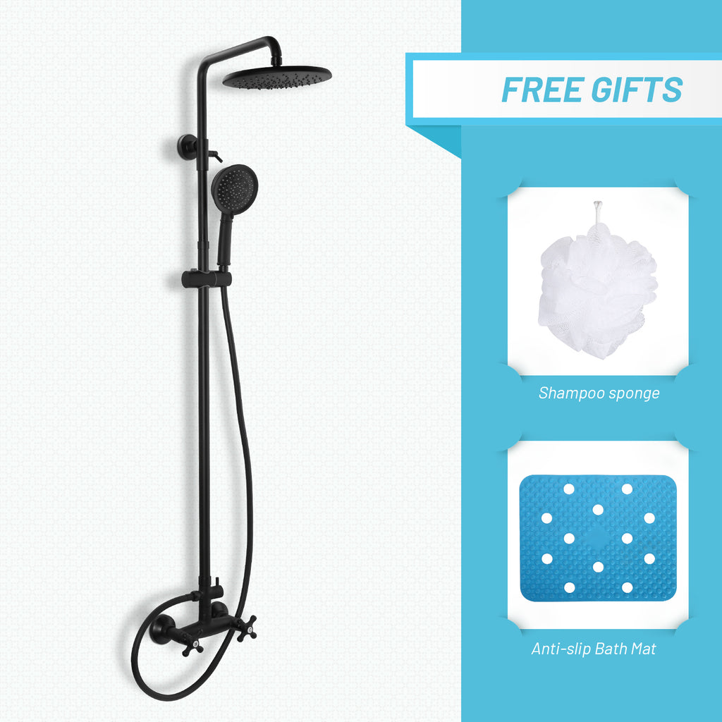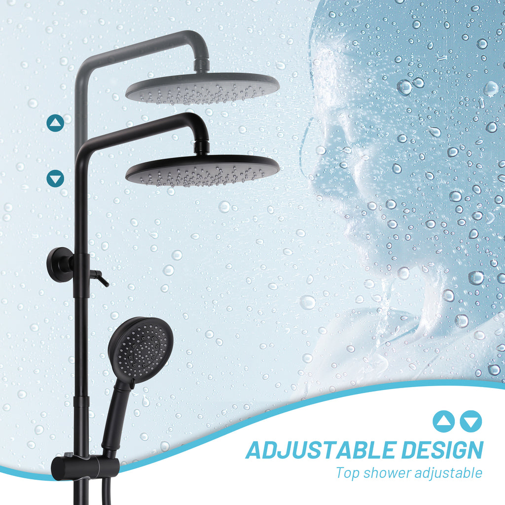 - Adjustment Design:Shower height(slide bar) can be adjustable between 100cm-140cm(39.4inch-55inch). Handheld shower also can be adjusted up and down on the rail