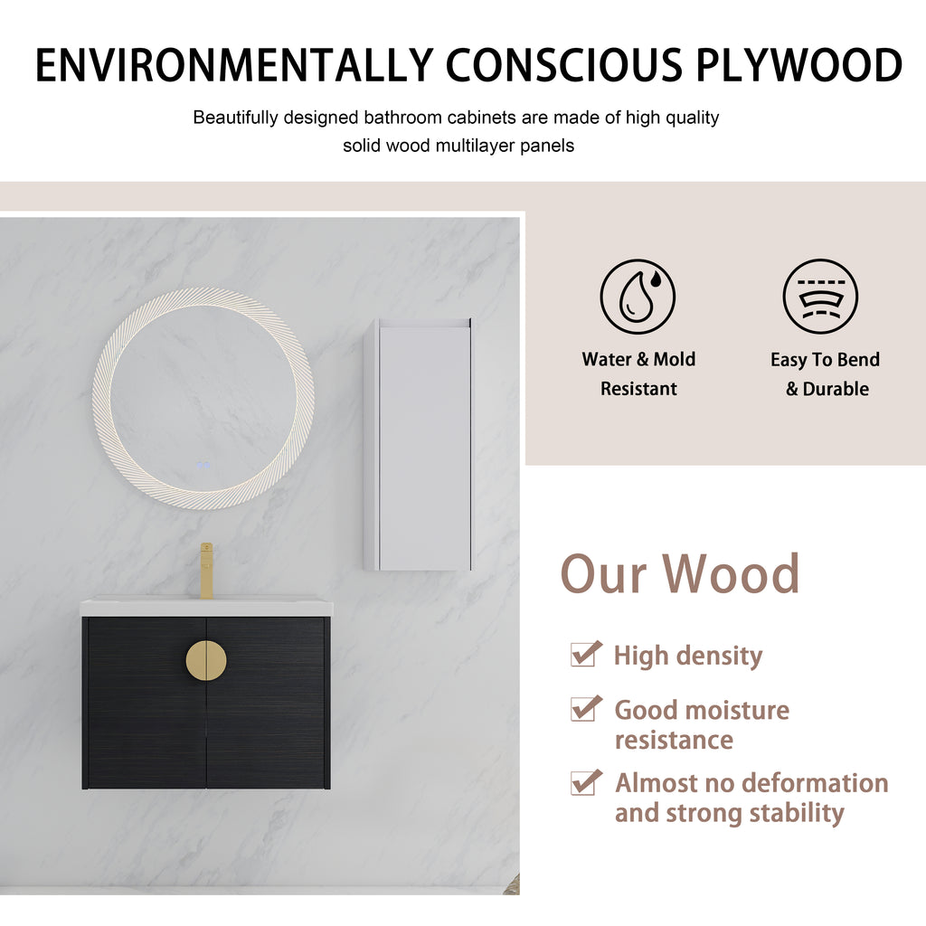 Vanity base is made of high quality plywood that surface material used 'Scratch & Water-Resistant' melamine, which is designed to not only withstand threats of moisture and humidity but also easy to clean and maintain.