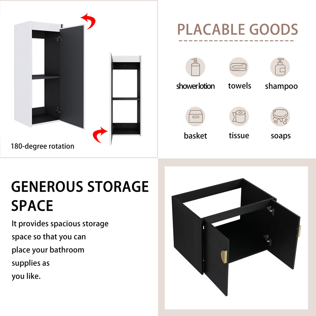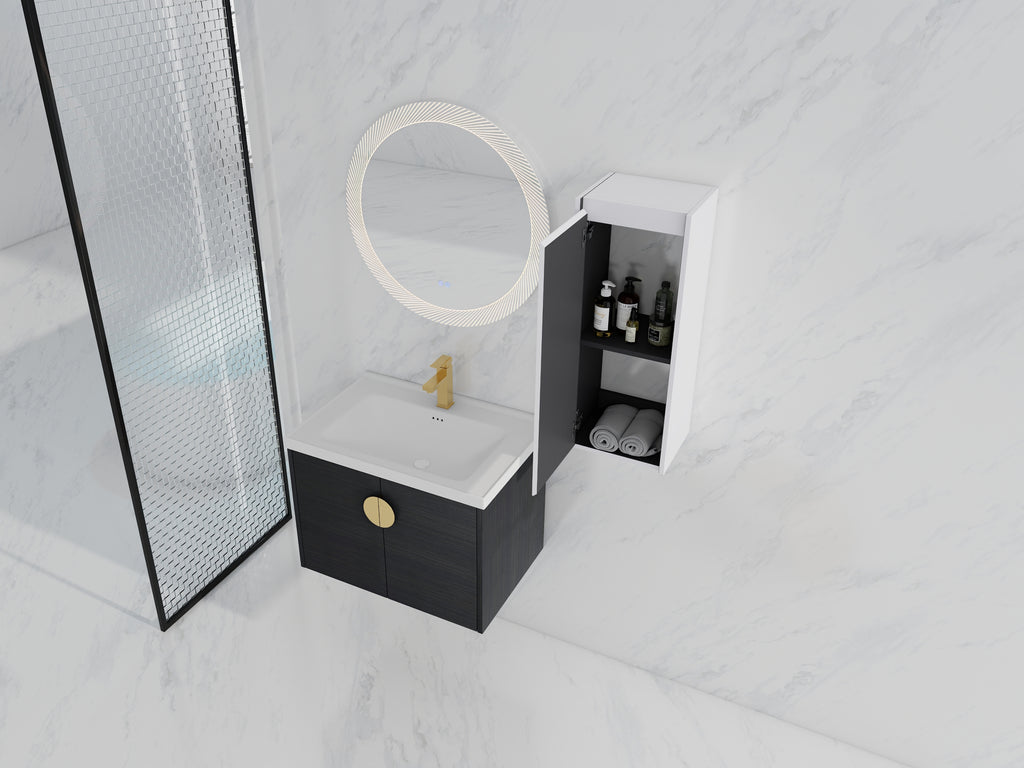 The wall-mounted bathroom side cabinet efficiently utilizes space with its sleek wall-hung design, freeing up floor area in compact bathrooms. The thoughtfully designed interior shelf enables organized storage of daily essentials like shampoo and body wash, making retrieval effortless while promoting easy cleaning and maintaining a tidy bathroom environment.
