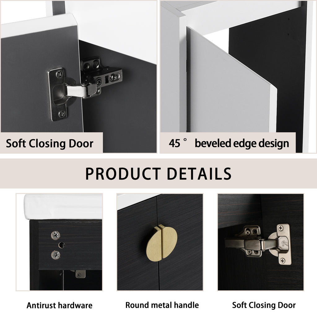 The ample double door cabinet provides plenty of storage space in the bathroom, and the space at the bottom allows for easier access to dirty clothes baskets and daily cleaning. Extra matching a combination of separate small side cabinet provides plenty of extra space for the bathroom.