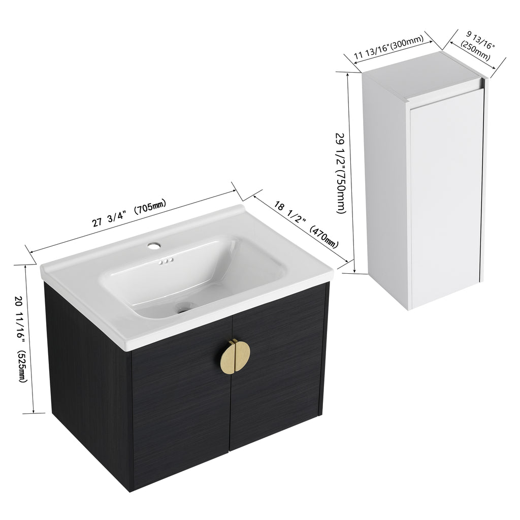 | Package includes | -1x Vanity Cabinet; -1x Ceramic Sink; - 1x Side Cabinet; -2x Metal Handle; Parts Package |