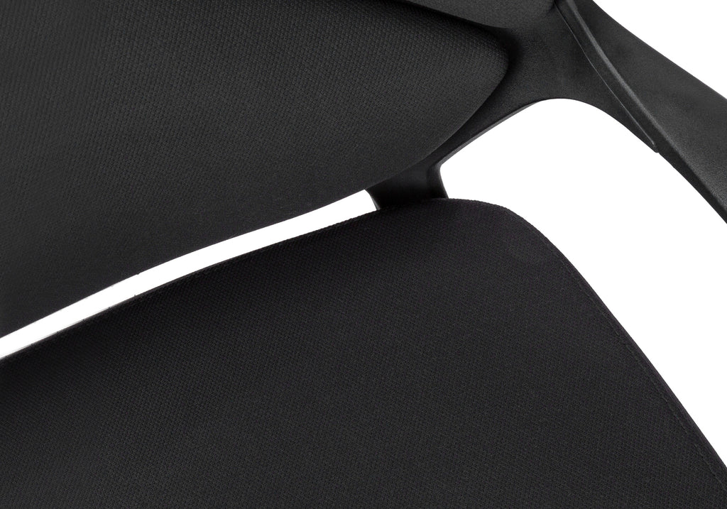 - High-back executive office chair with fixed armrests in black and soft, polyester fabric in black