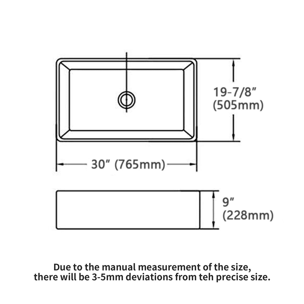 - This 30 inch white farmhouse kitchen sink constructed of ceramic for extreme strength and durability. Kitchen Sink surface is extreme resistance to chips, abrasion or scratches and discoloration for years of beauty and reliable performance.