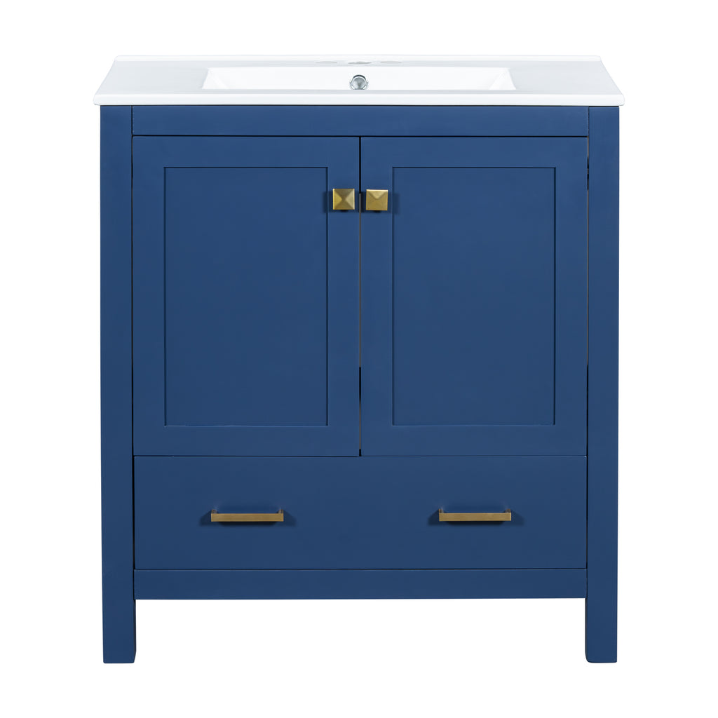 - [Elegant and Stylish Appearance] Our 30-inch Bathroom Cabinet features sleek lines and a modern design. With its sophisticated blue exterior, fashionable handles, and a white sink, it adds a touch of brilliance to your bathroom decor. The combination of style and functionality creates an inviting and aesthetically pleasing ambiance.