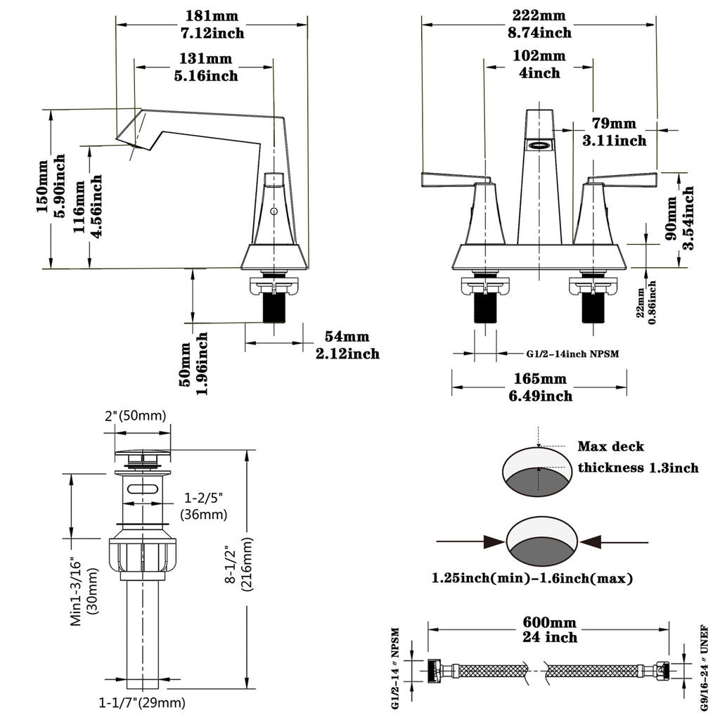 - Installation ❤ —— Installation is easier than ever with the supwork two handle bathroom faucet mounting assembly. Mounts the faucet tightly to the deck, helping prevent the lavatory faucet from loosening over time. Easily installs on decks up to 2-1/2 In. thick, like granite or quartz. Whether you’re a first timer just learning how to install a faucet or a seasoned installation professional, save your back and your knees with the supwork bathroom mounting assembly.