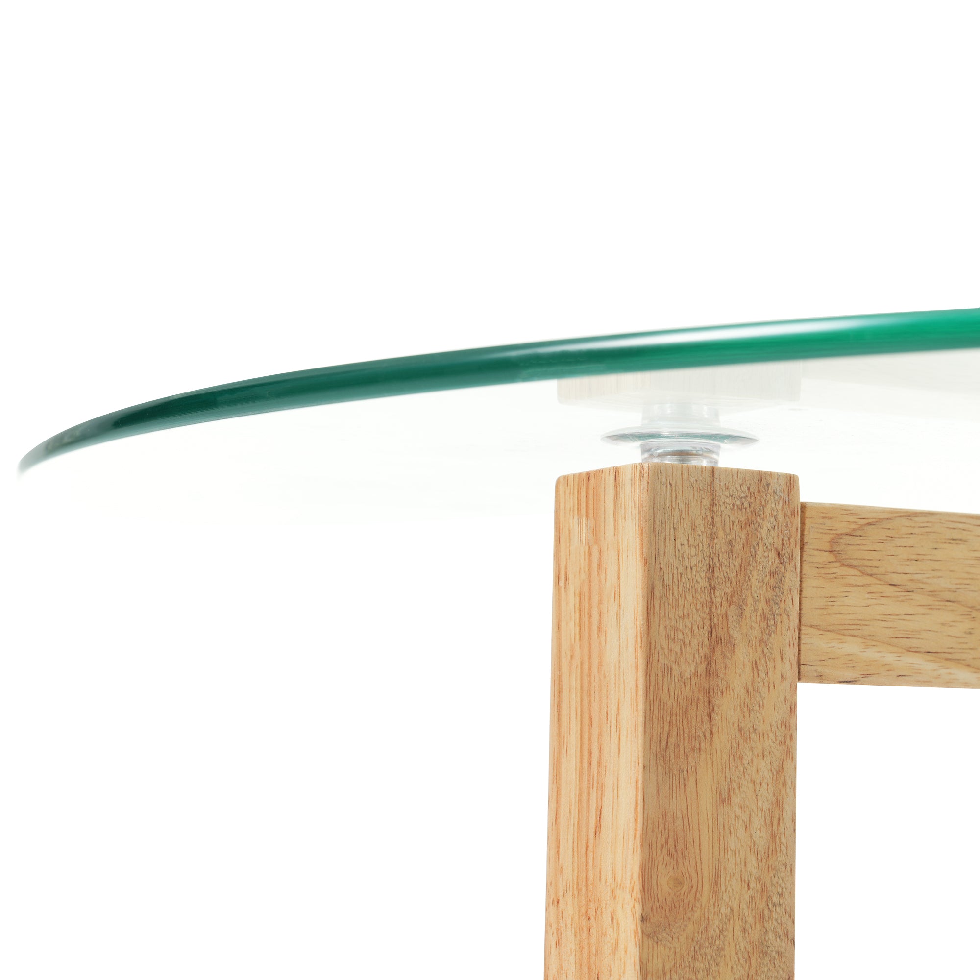 - The contemporary coffee table features a hard-wearing 8mm tempered glass top and sturdy tripod shaped wood frame that can easily withstand daily use. The end side table is strong enough to load up to 66 lbs.