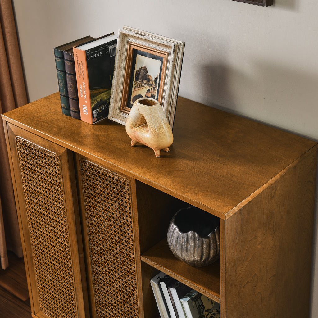 - 【Modern Style with Vintage Charm】- Elegant wood grain, smooth lines, vintage colors and natural rattan combine to create a vintage and elegant look. Its large storage space capacity, it can be used as a TV cabinet, hallway cabinet, entryway storage cabinet, bathroom floor cabinet, wine cabinet with storage or living room decorative cabinet.