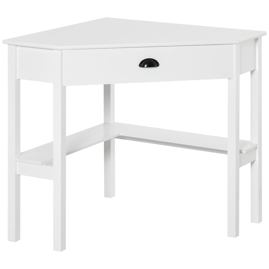 - Corner Desk Information: Overall Dimensions: 29.5' W x 29.5' D x 30' H, Weight Capacity: 110 lbs. (total), 66 lbs. (table top), 22 lbs. (drawer), 22 lbs. (each shelf)