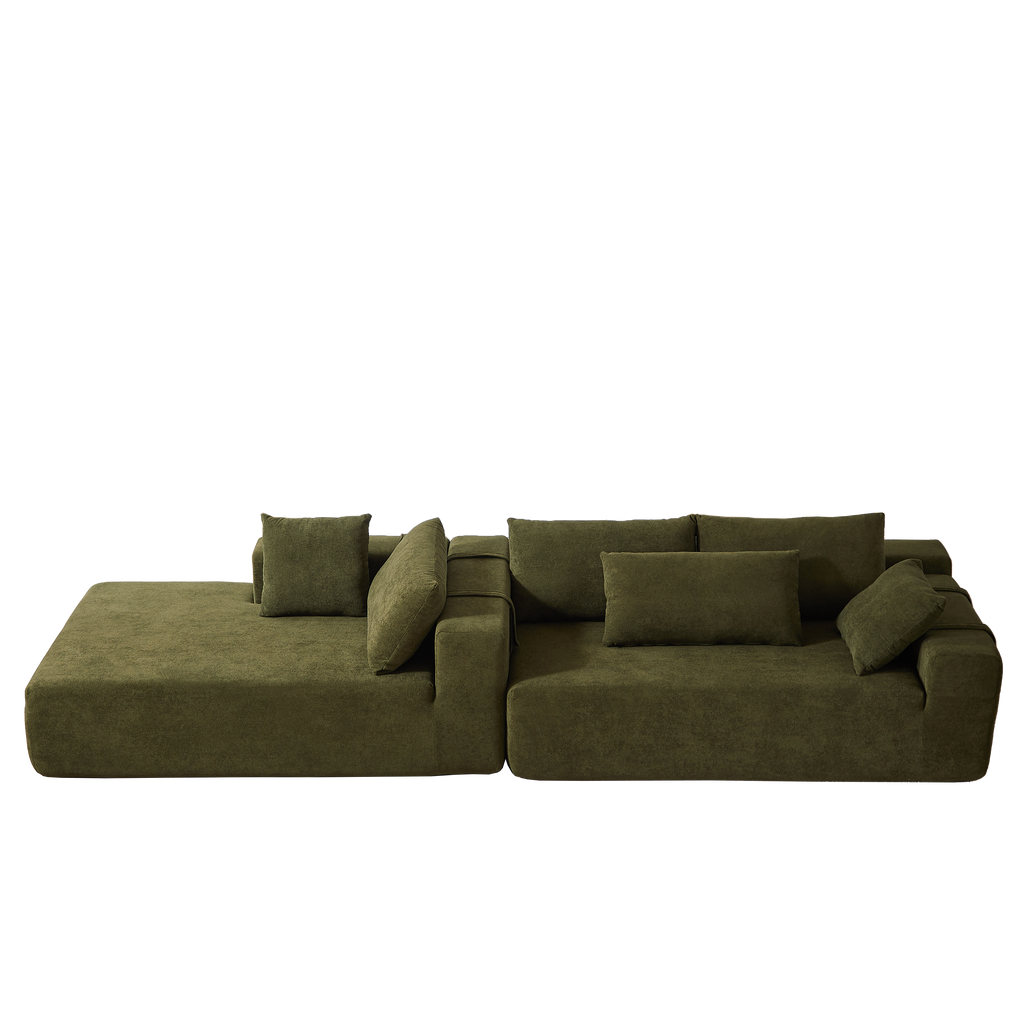 - [Modern Sectional Sofa Couch]This Chenille upholstery sectional sofa features a simple style, focusing more on clean lines to bring a timeless and chic to your home, This Upholstered sofa sectional features square arms and includes six pillows[dimensions:17.7*29.5(3pcs),17.7*17.7(2pcs),13.7*27.5(1pcs)] make sure your living room the center of attention
