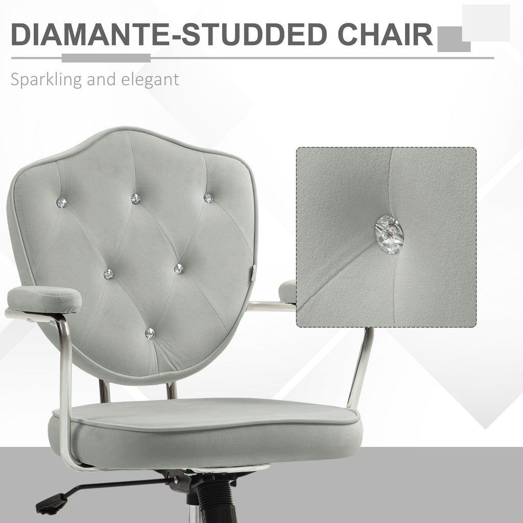 - Chic Fabric: This cute desk chair features a rhinestone-studded back and soft velvet-feel fabric, making it a stylish addition to any home office or vanity.