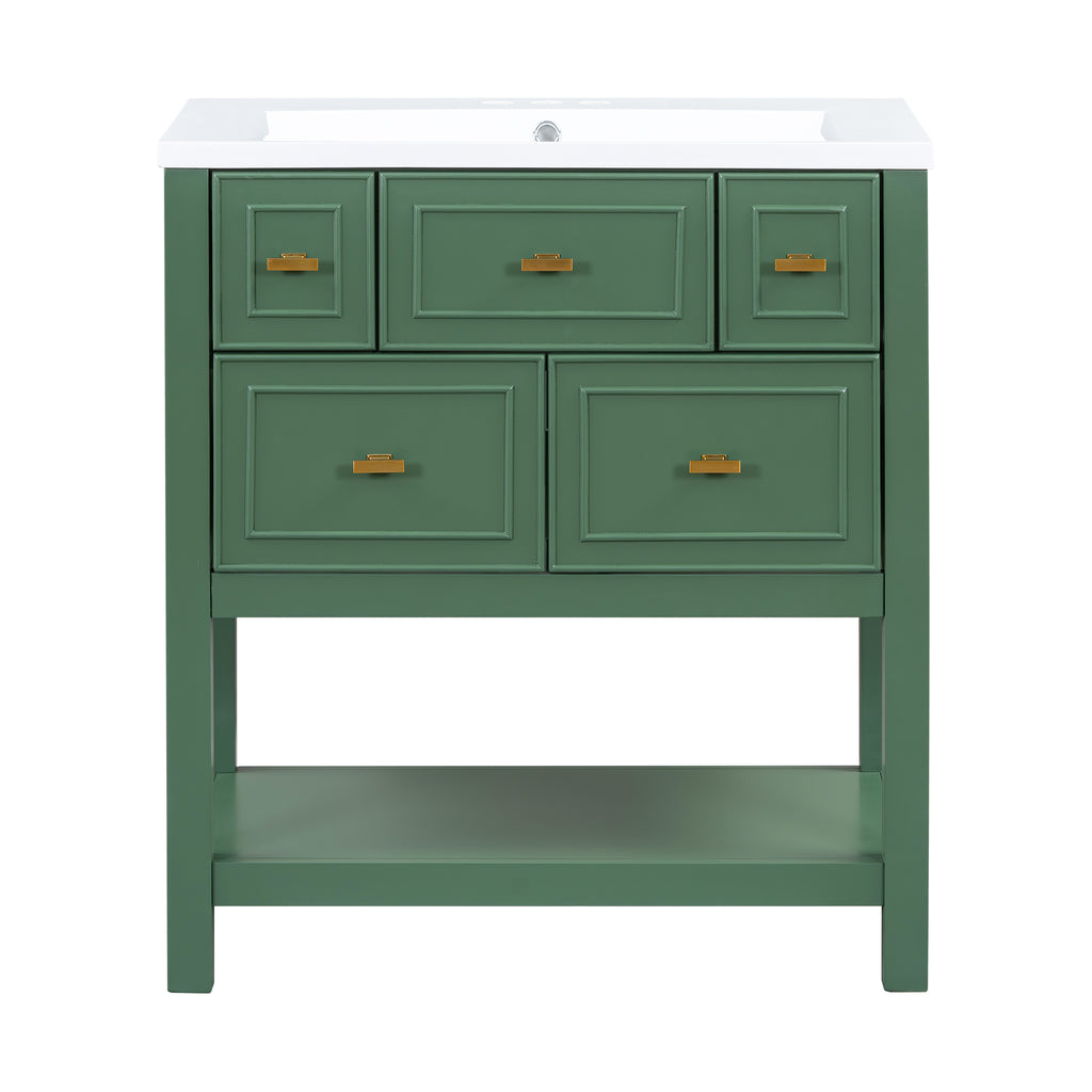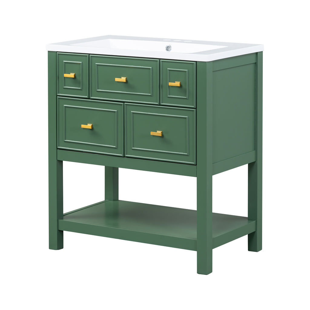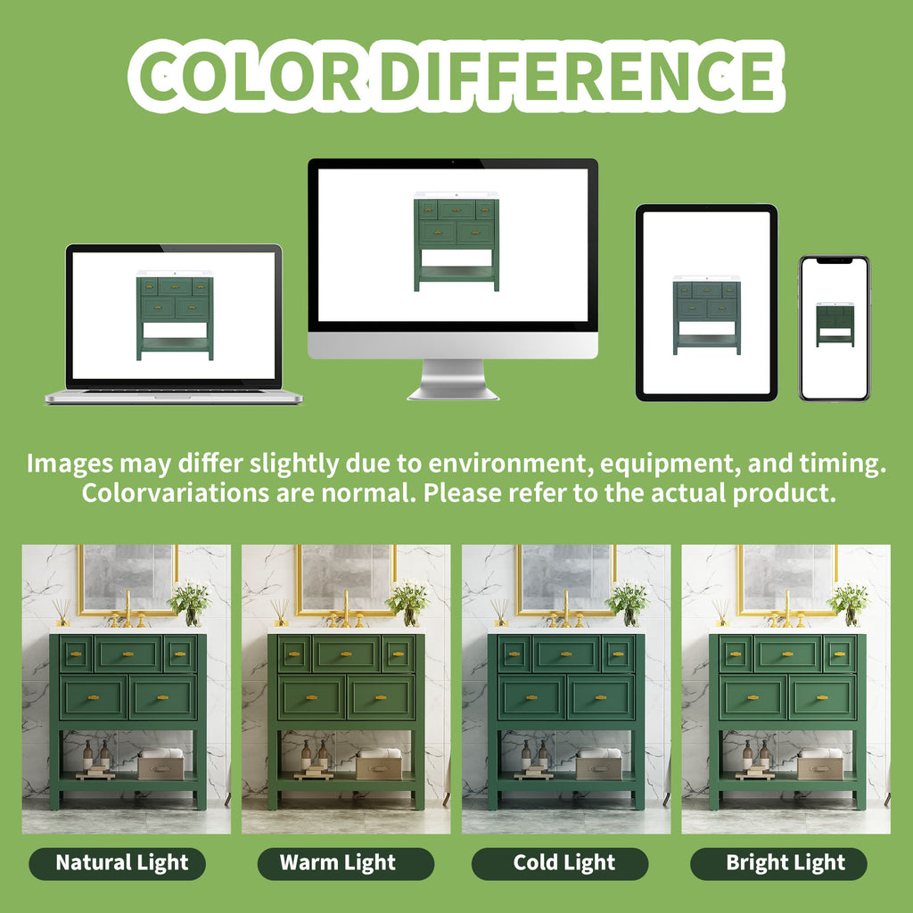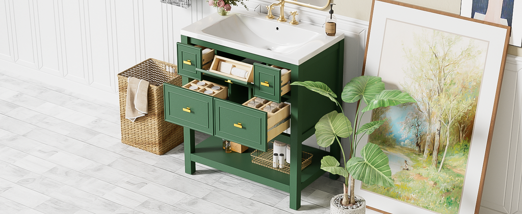 - [Modern Design]The unique green and gold bathroom vanity has extraordinary visual enjoyment under the illumination of the bathroom lamp. Sophisticated looks combined with functional construction will grace your bathroom.