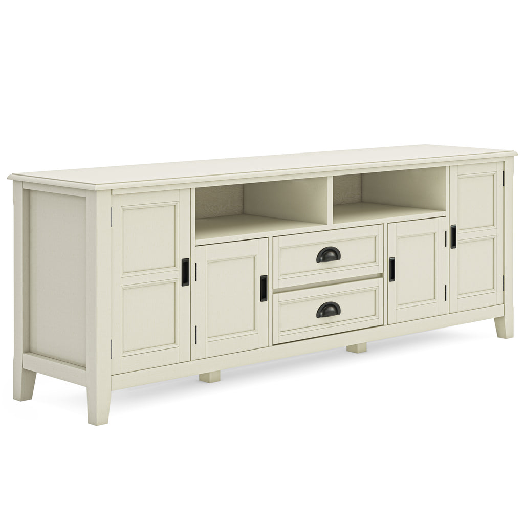 - Extra wide TV Stand is perfect for TVs up to 80 inches, features cord management cut-outs for easy installation of TV and media components