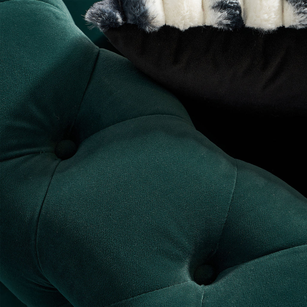 This modern velvet sofa was designed with tufted buttons and decorated with 4 gold metal legs. Simple and advanced, a great addition to completing your living room bedroom office, perfect accent furniture to match your decor.