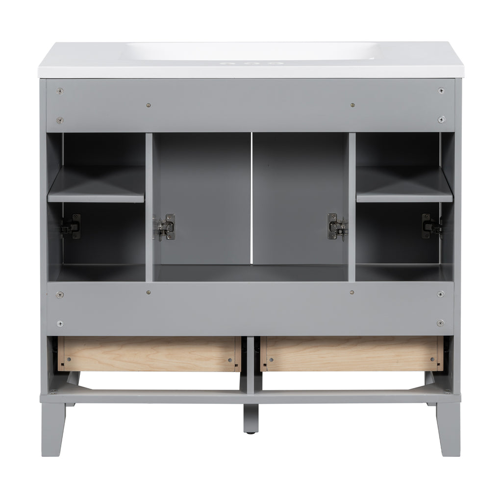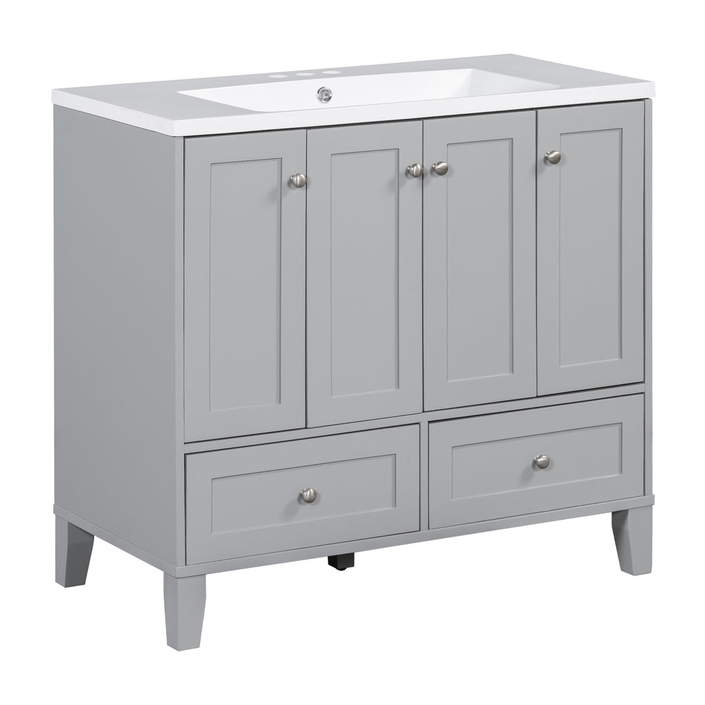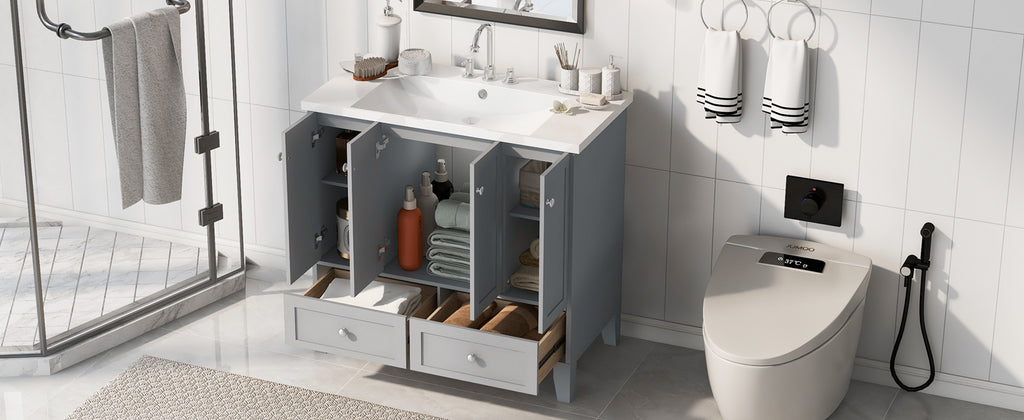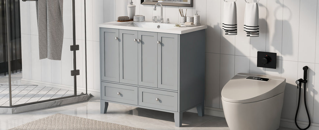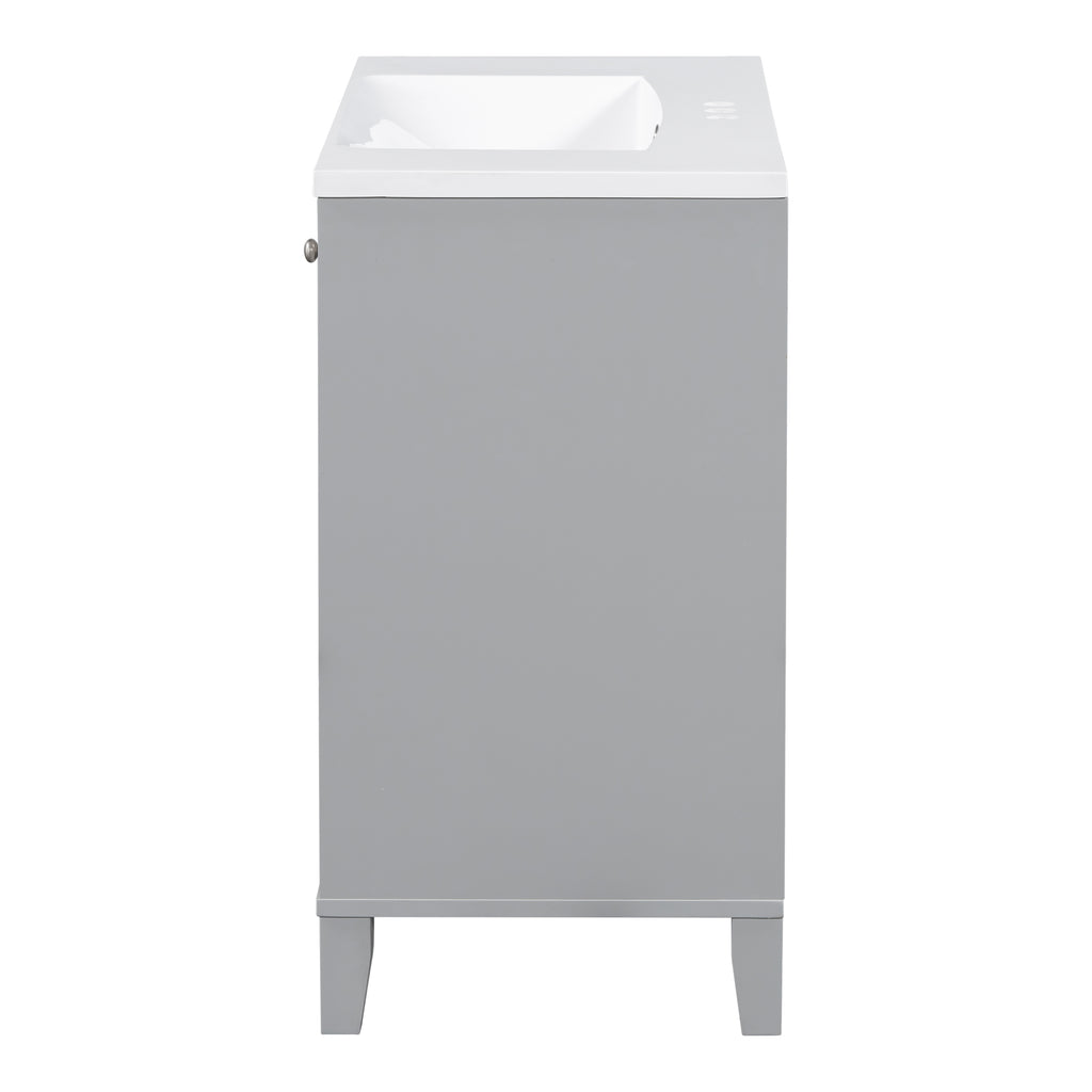 - [Solid Wood Structure & Glossy Resin Basin] As a functional furniture in bathroom, the following materials are used for this bathroom vanity: resin for basin, solid pine wood for frame and MDF boards for doors and shelves. Resin material has the advantage of being smooth and easy to clean. MDF boards are wearable and durable as well.At the same time,the shelves are all adjustable, you can adjust the height according to your actual needs.
