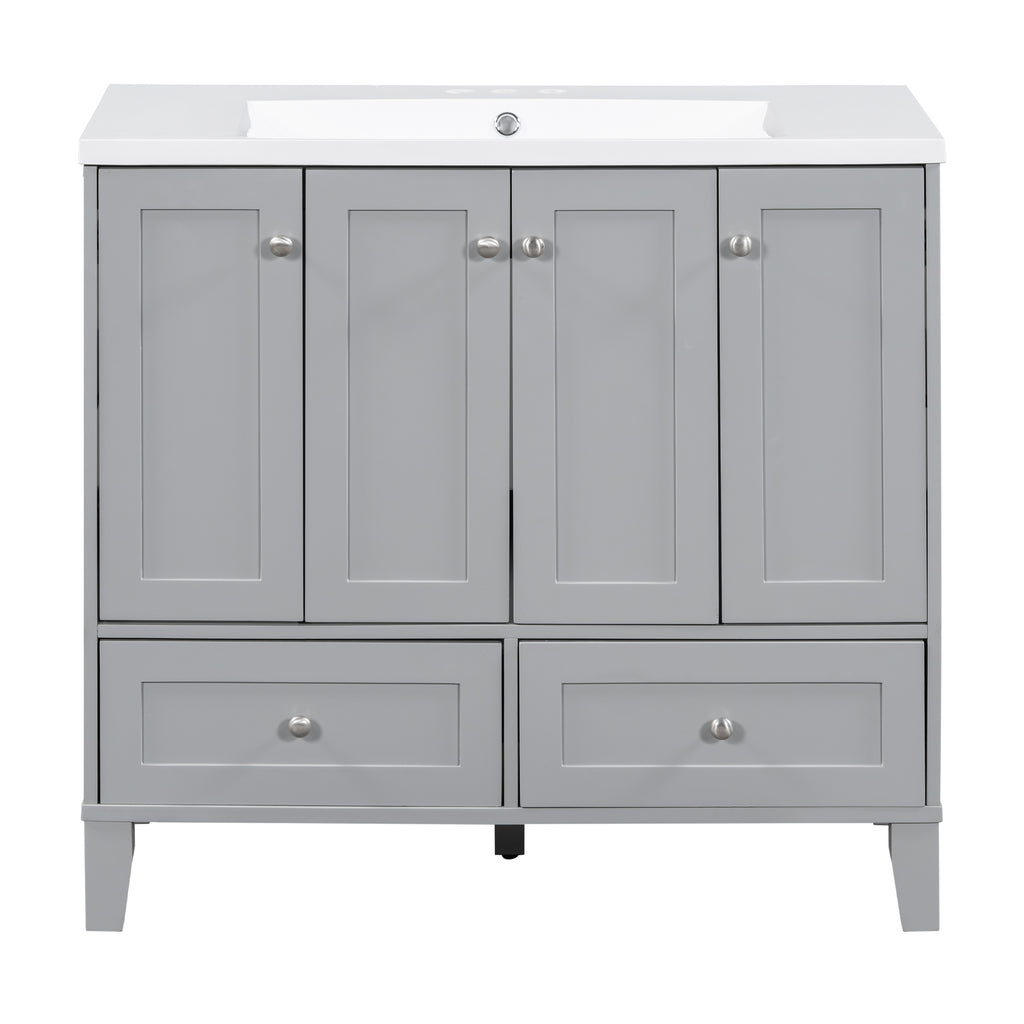 - [Amber Storage] In order to meet your storage needs for various items, this bathroom vanity is equipped with very sufficient storage space. The entire bathroom cabinet has two drawers for daily necessities and a cabinet for medium and large items with shelves that distribute space reasonably.